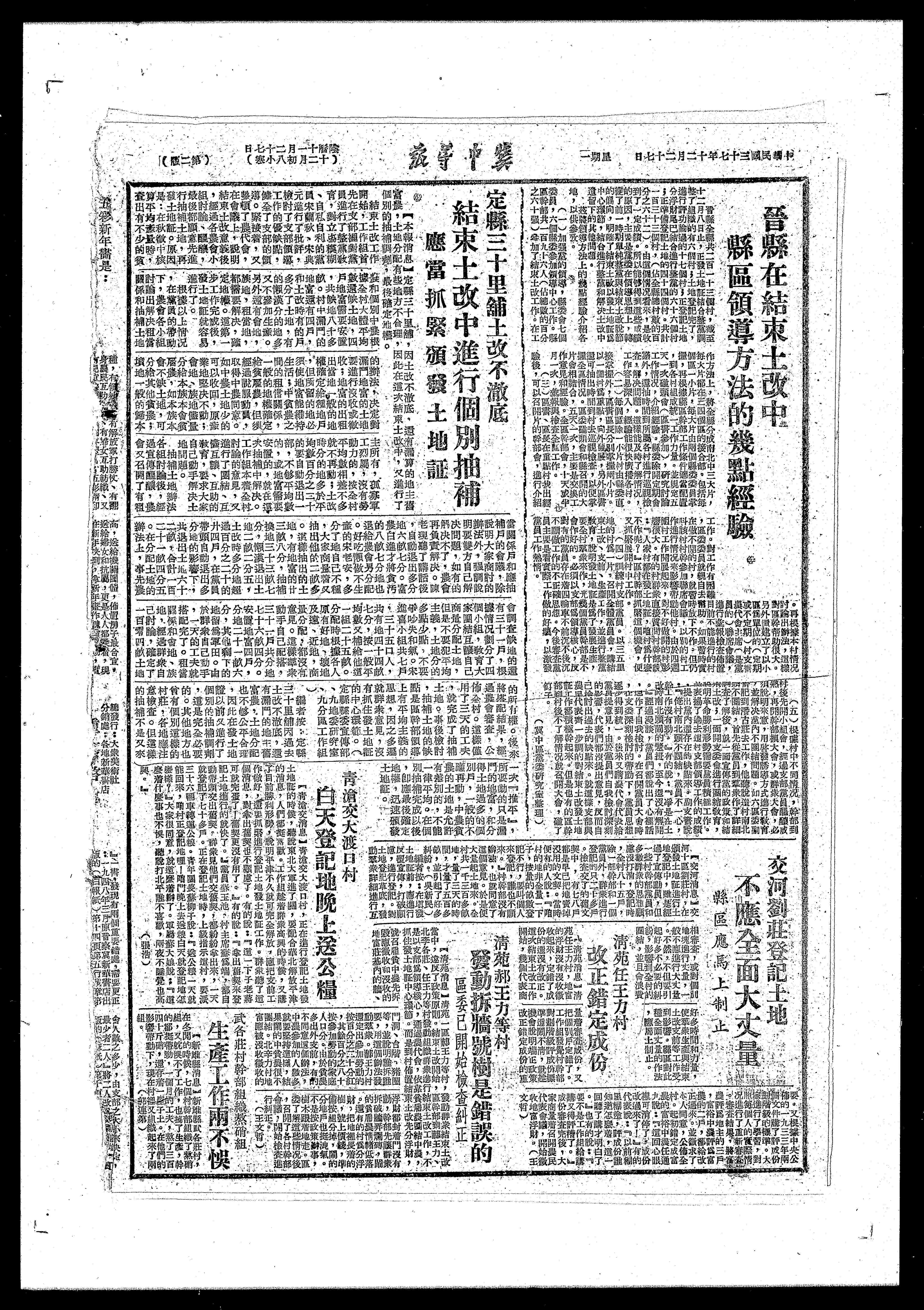 清苑消息】清苑一區煮王力等村,發戲群浆結束土改