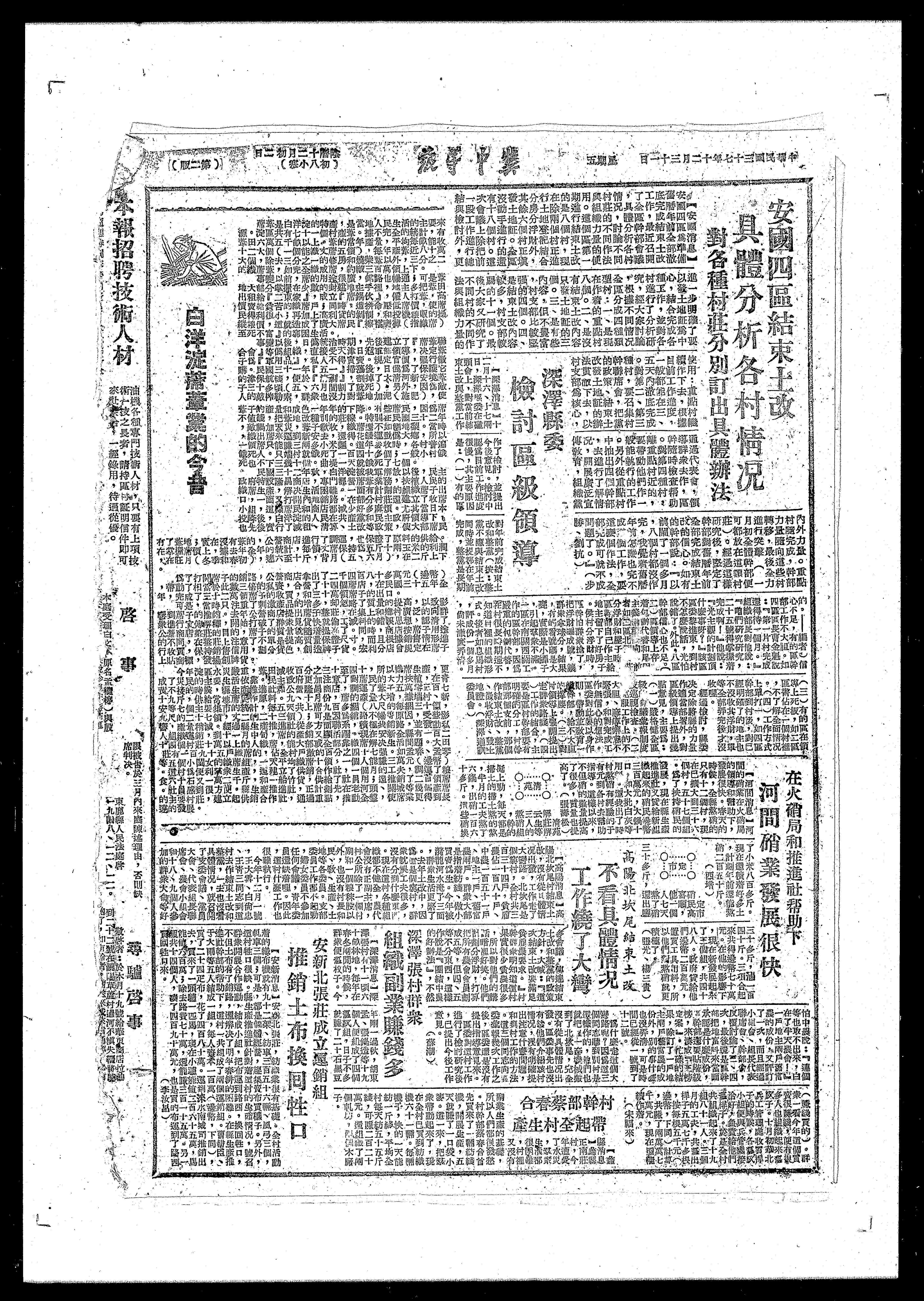 安新北張莊成立题销組 推土布换同性口