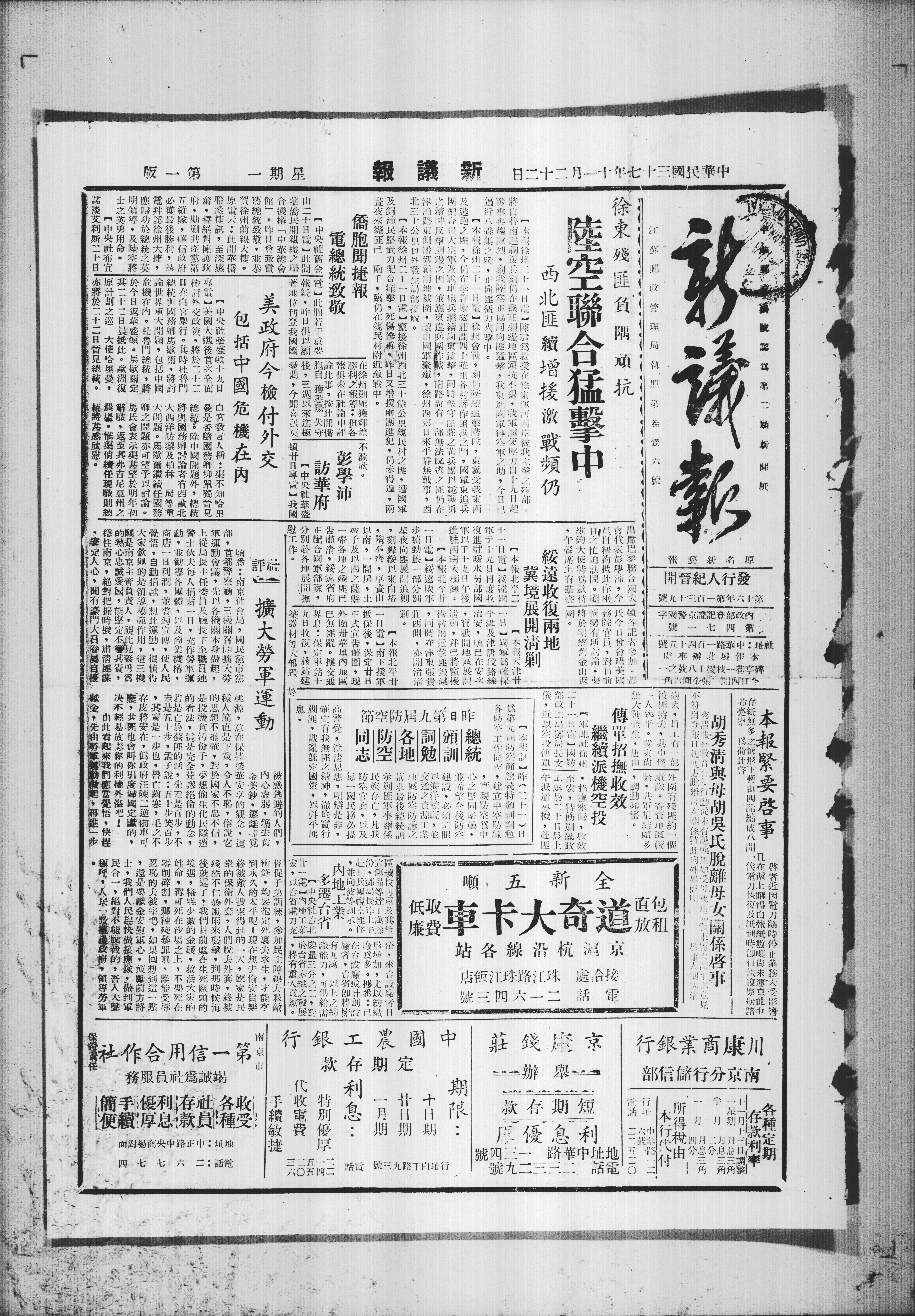 本报徐州二十一日电,徐州会战,仍陆继续追剧,受我逃跑之匪,今仍在各村落做困兽之斗。