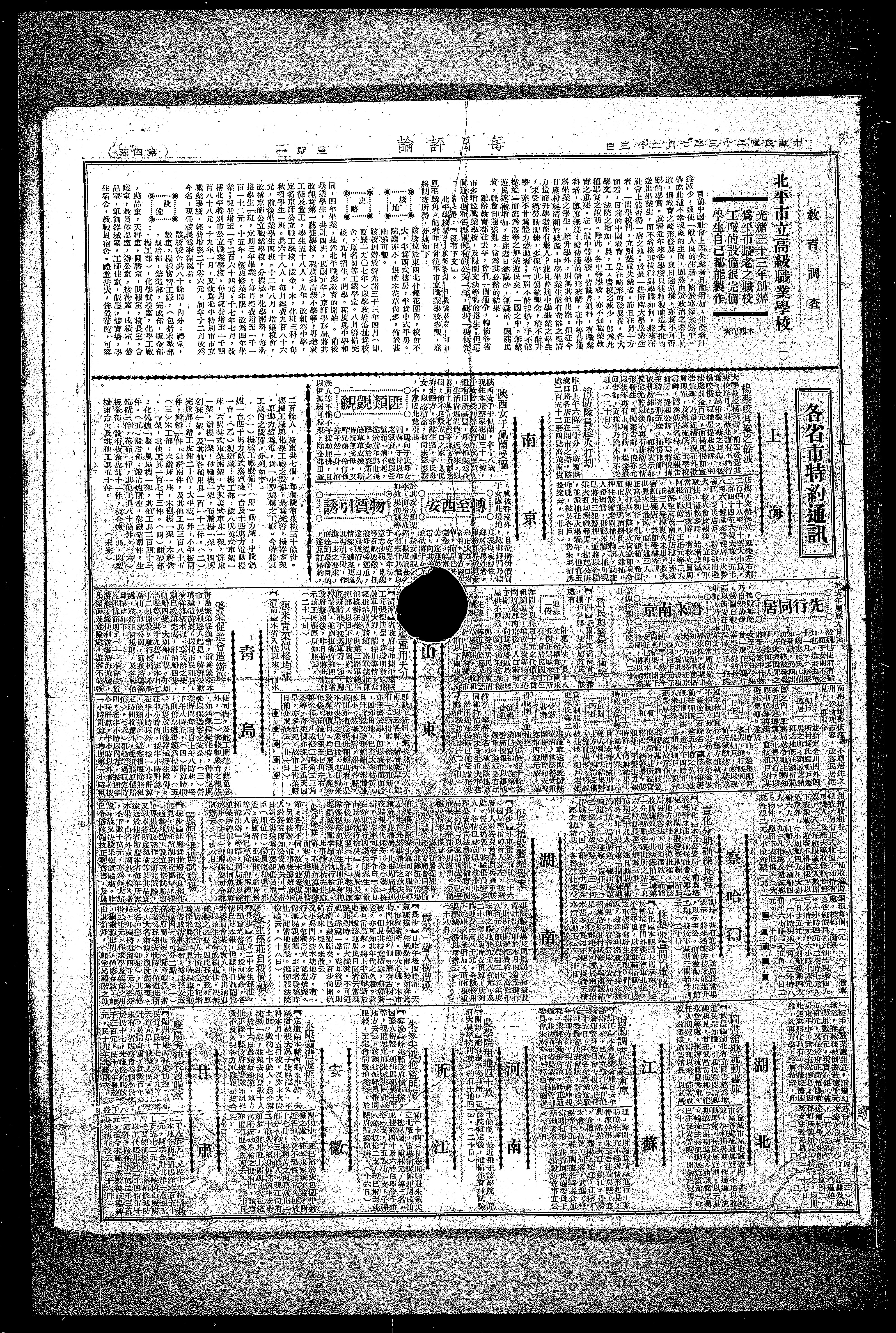 教育调查北平市立高级職業学校