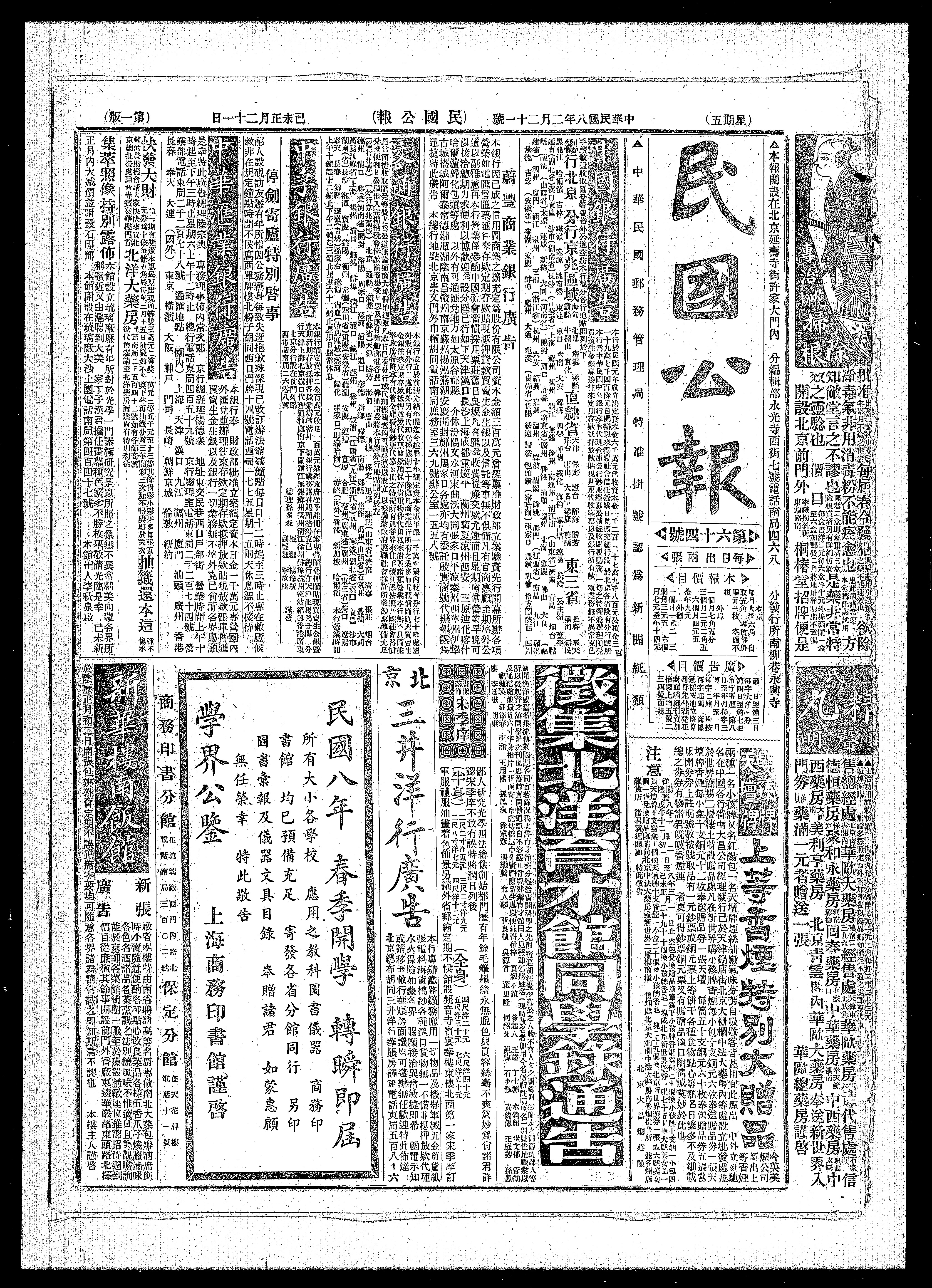 北洋大药房 电话南局二千五百四十二号如有各铺商号