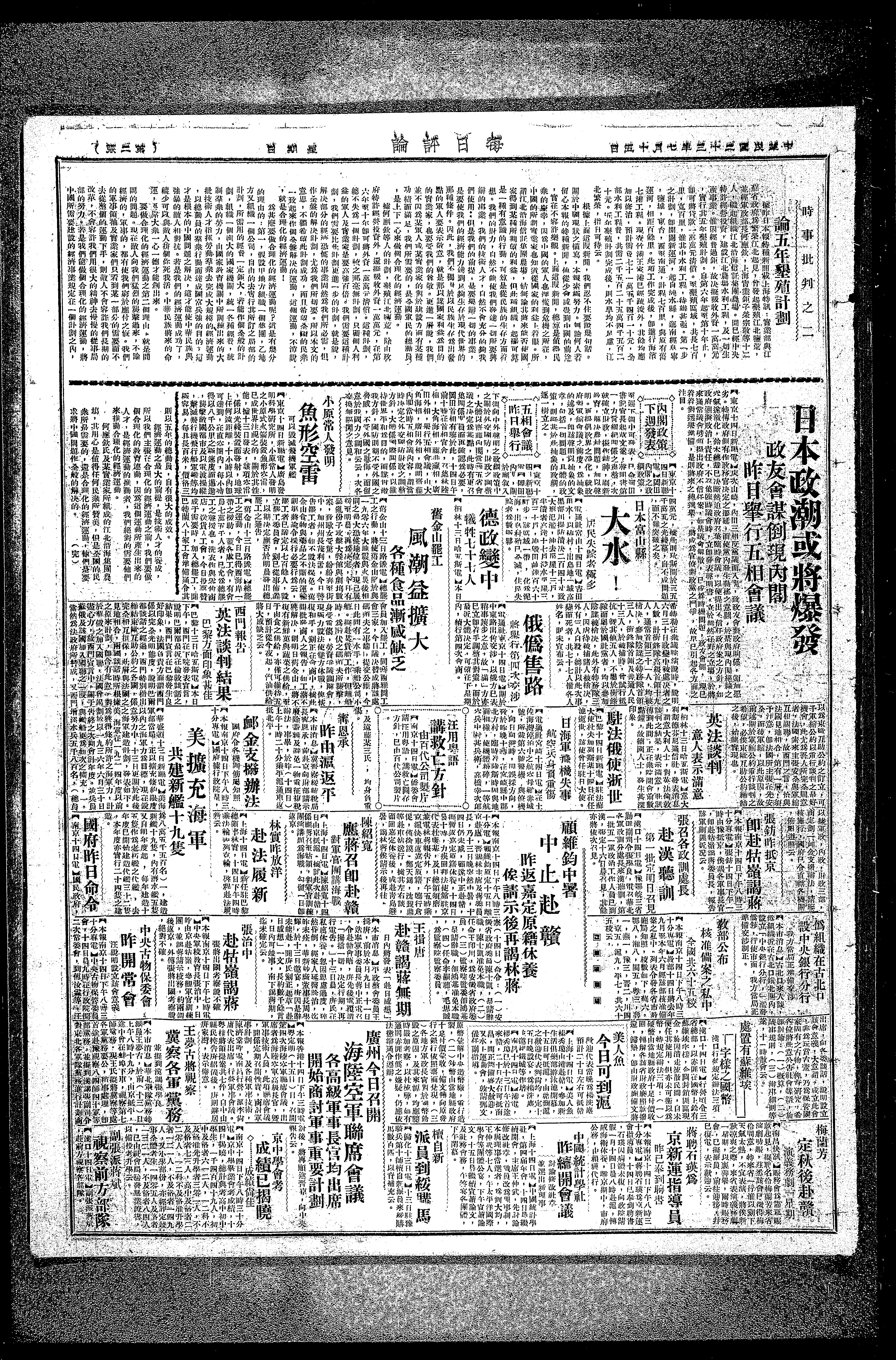 日本政潮或将爆发政友会谋道歉内阁昨日举行五相会议