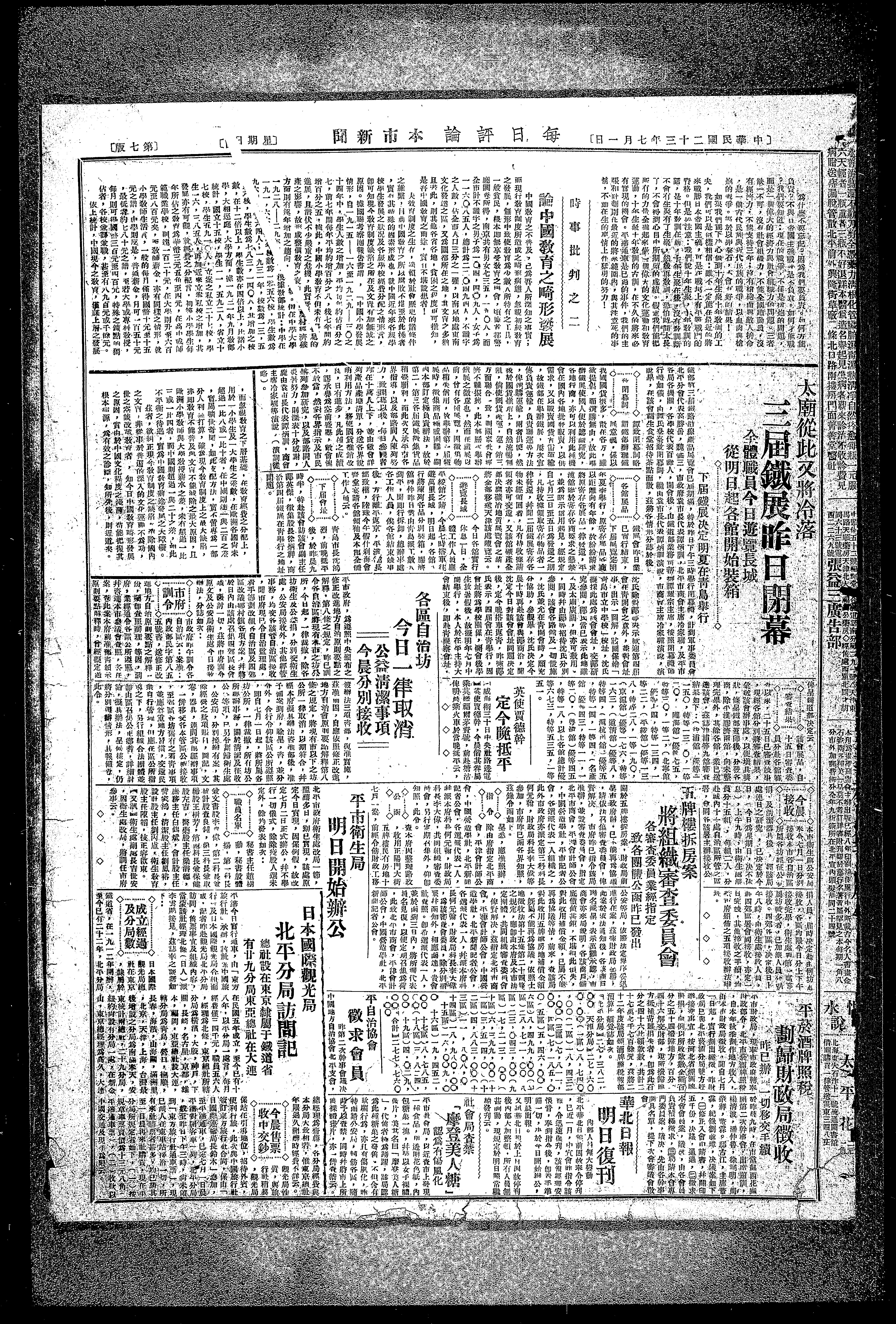 日本国际观光局在东京,隶属于铁道省,在一九一二年开办,至今已有22年,北平分局在民国五年成立至今已有18年,以平分局一处言,每月经费仅三四千元,职员五六人。