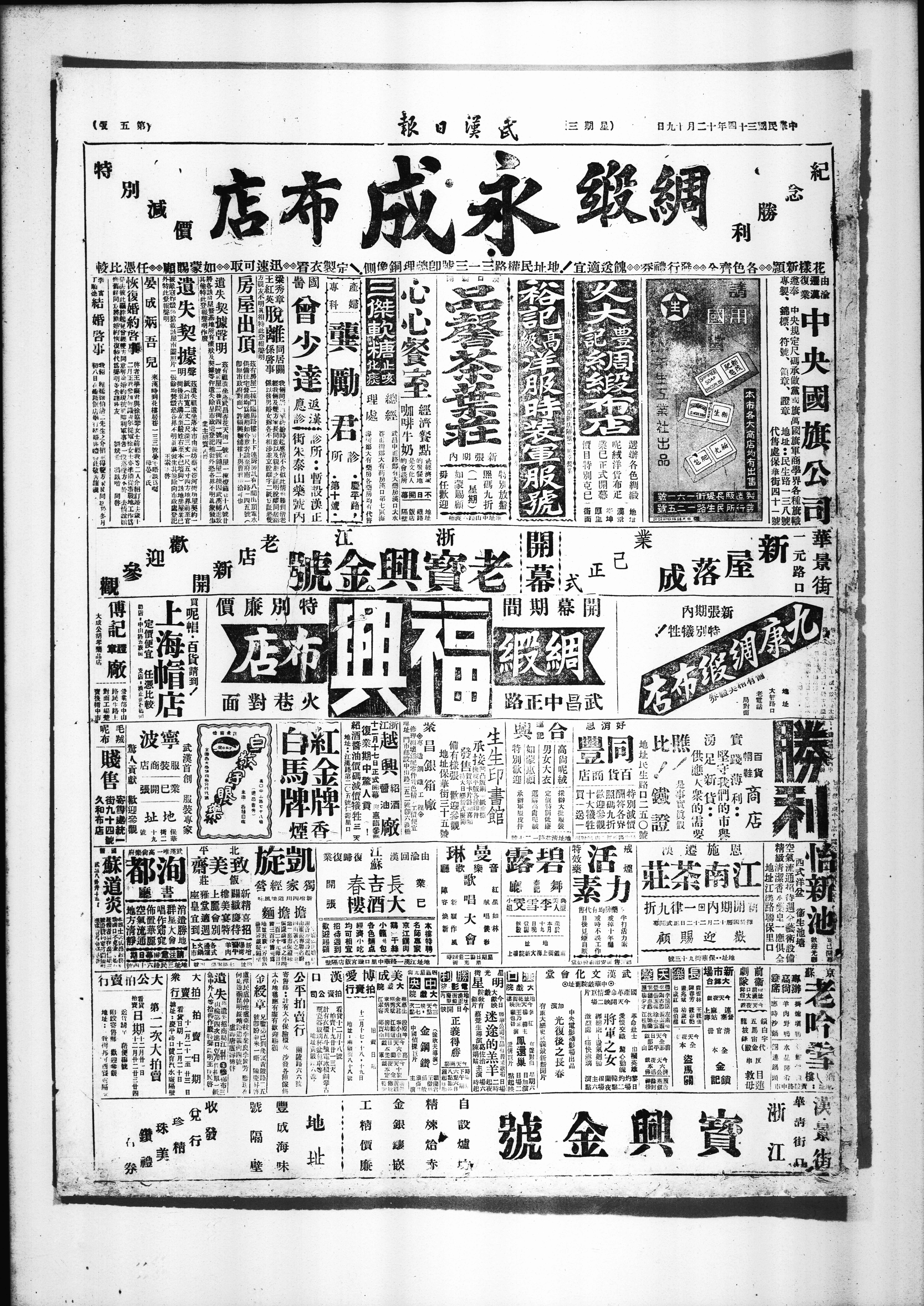 由渝还汉复业遵奉中央规定尺码承做党国旗万国旗军商学界各种旗帜、专制、锦标、符号、领章、证章