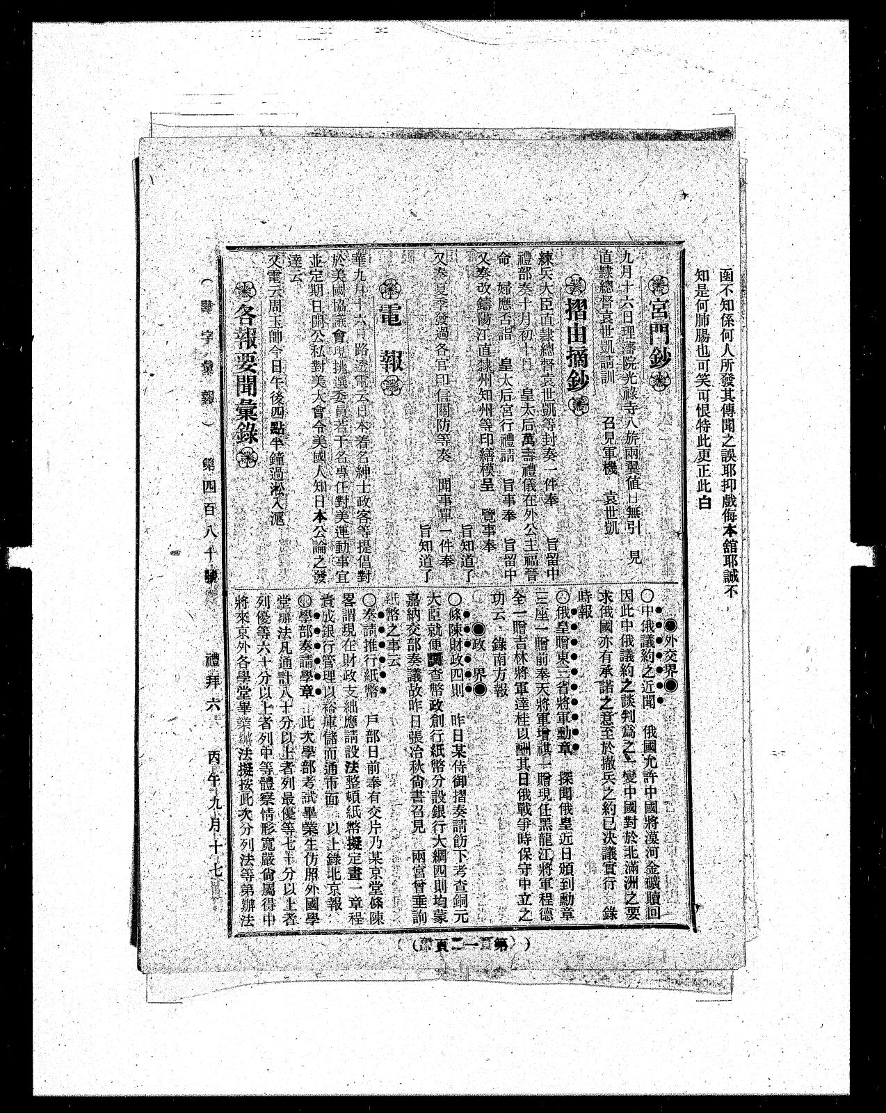 各报要闻汇录政界,抒陈财政四则。昨日某侍御摺奏请。