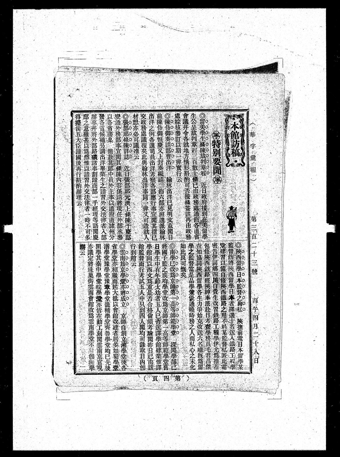 本馆访稿特别要闻留美学生倏陈裁判章程