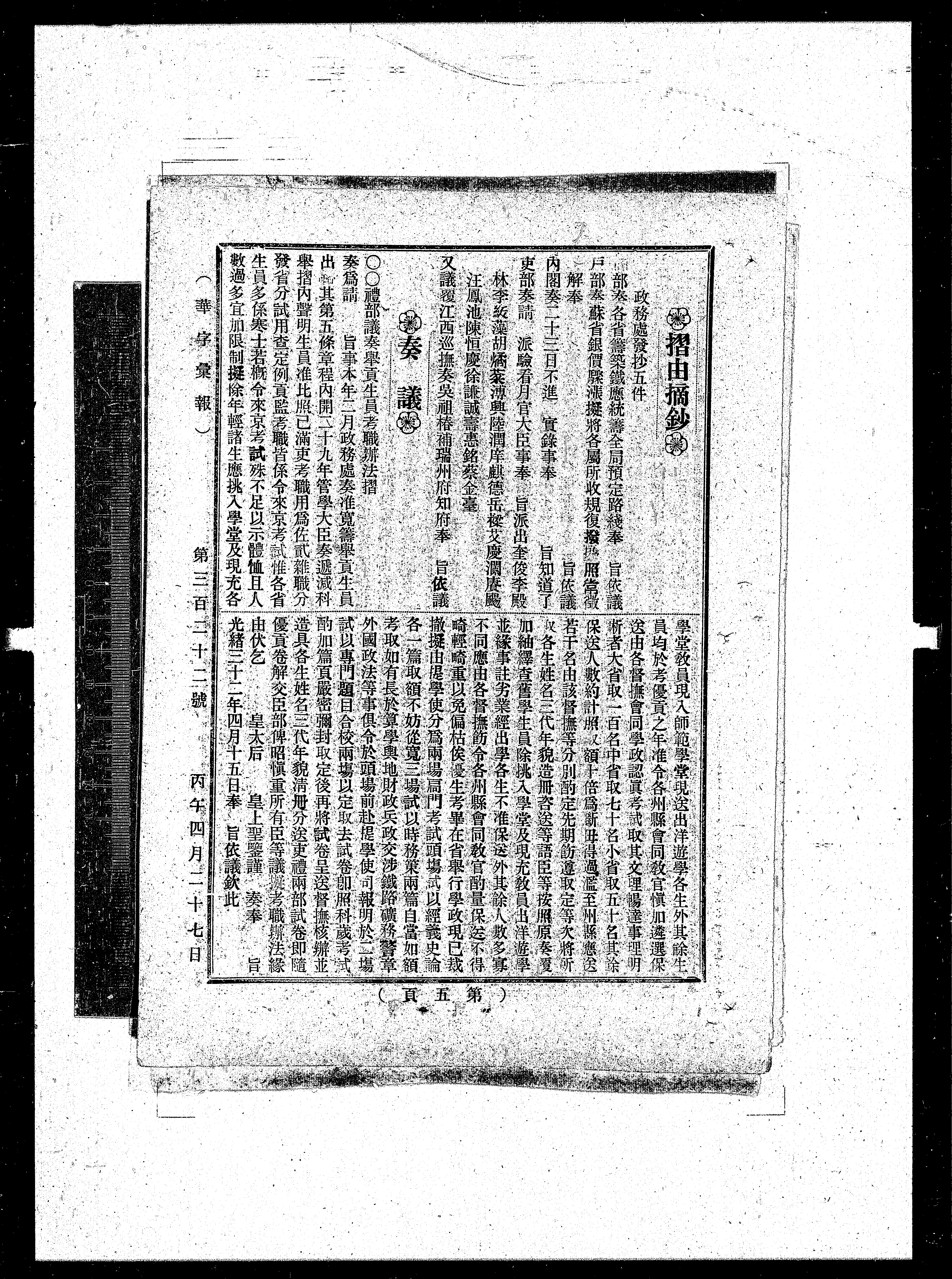 奏为请旨事本年三月政务处奏推宽筹举页生员出其第五条章程内开二十九年管学大臣奏递减科举折内声明生员准比照已满吏考职用为佐贰杂职分发省分试用查定例资监考职皆系令来京考试准各省生员多系寒士若概令来京考试殊不足以示体恤且人数过多宜加限制拟除年轻诸生应挑入学堂及现充各