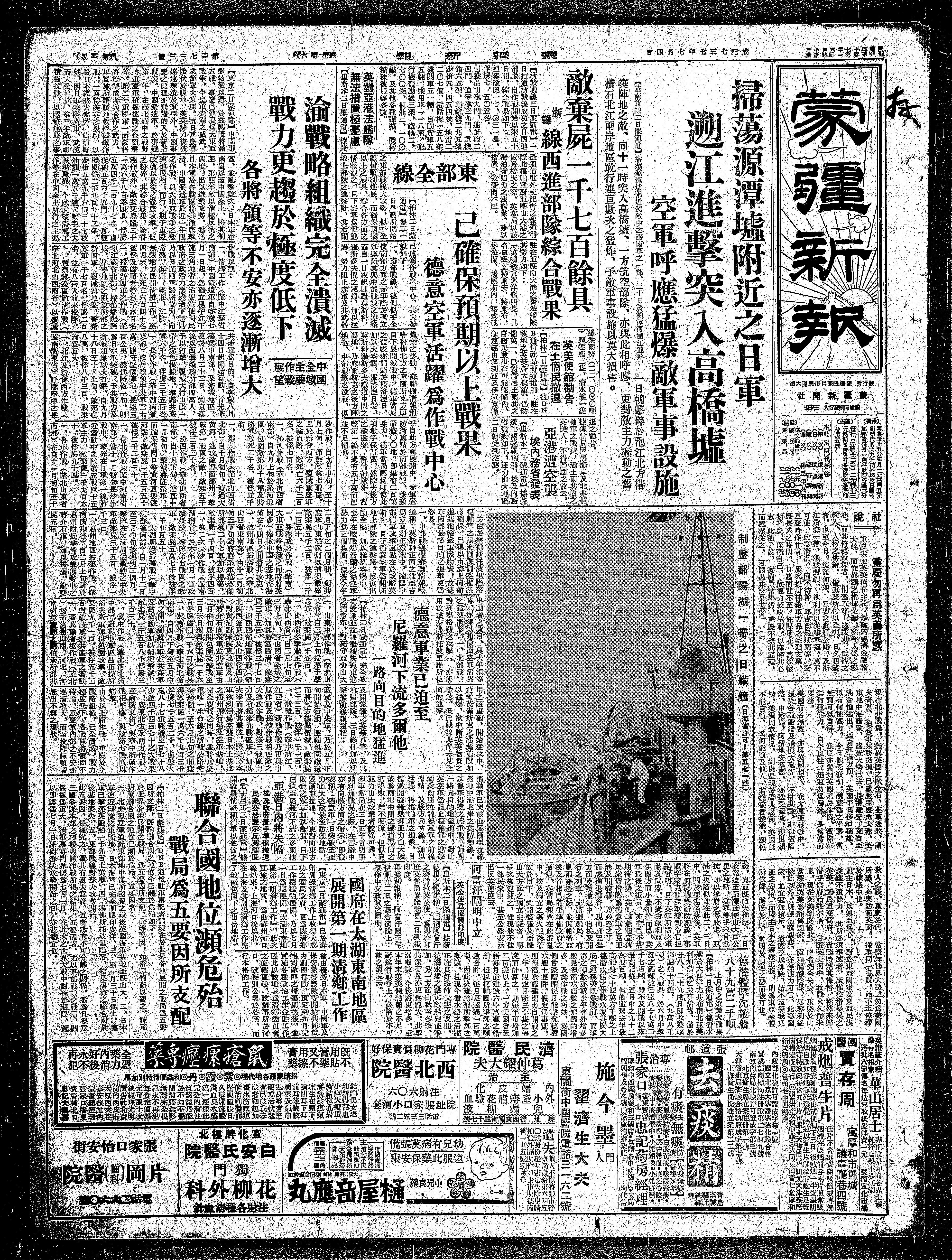 【君士坦丁二日蒙通电】据开羲罗情报称德军以破竹之势,向亚麓山大进击,一日夜竞迫至距离亚麓山大百公里之地点,英军几乎未曾抵抗