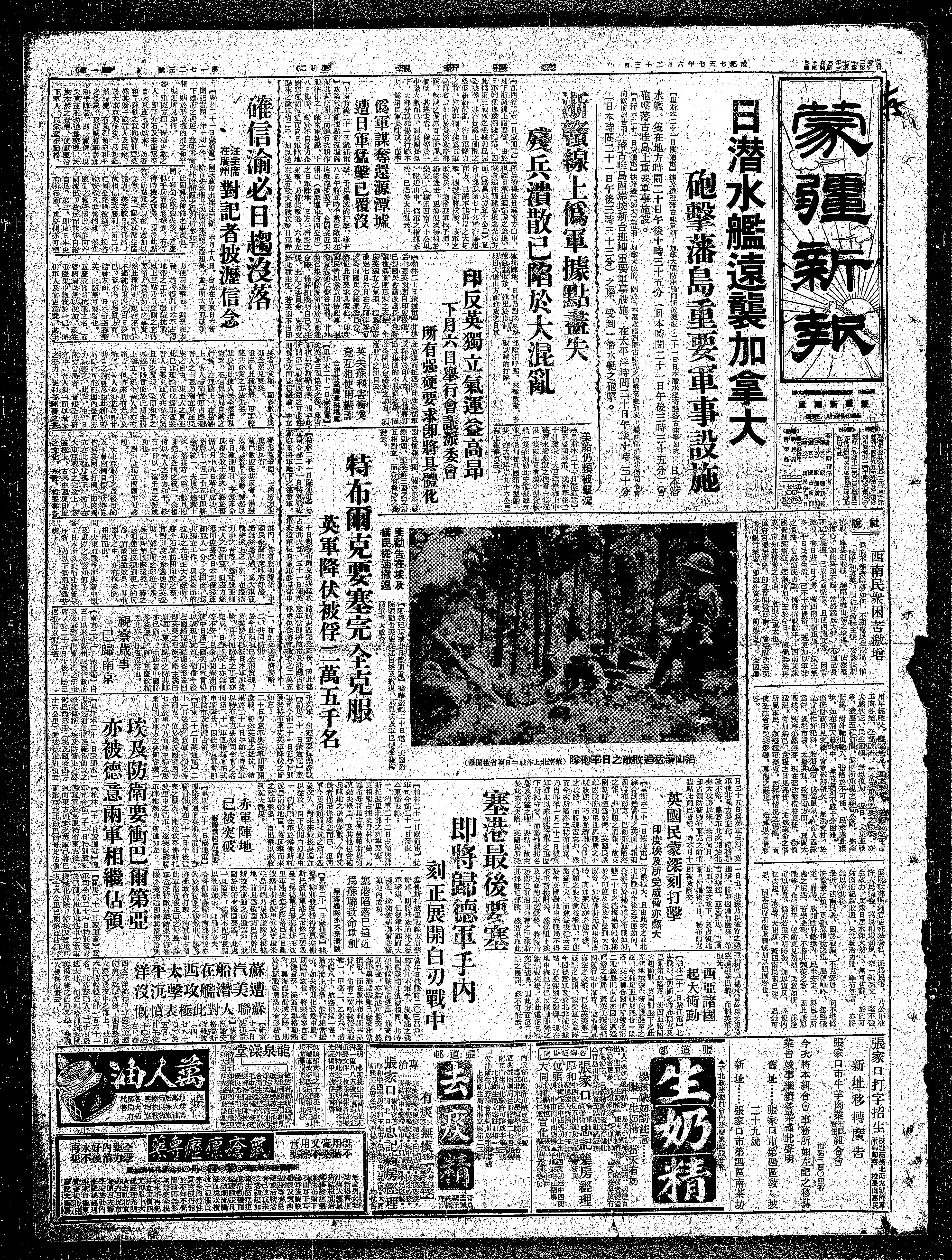 柏林21日蒙通电,德军司令部21日特别发表。将军麾下之德意军20日对特布旅客要塞猛攻。占掳其大部分,21日朝英军派遣军使向意军参谋。不申请该要塞完全降服,因此得意军上即将该市及港湾占领俘虏包含将官25000名。