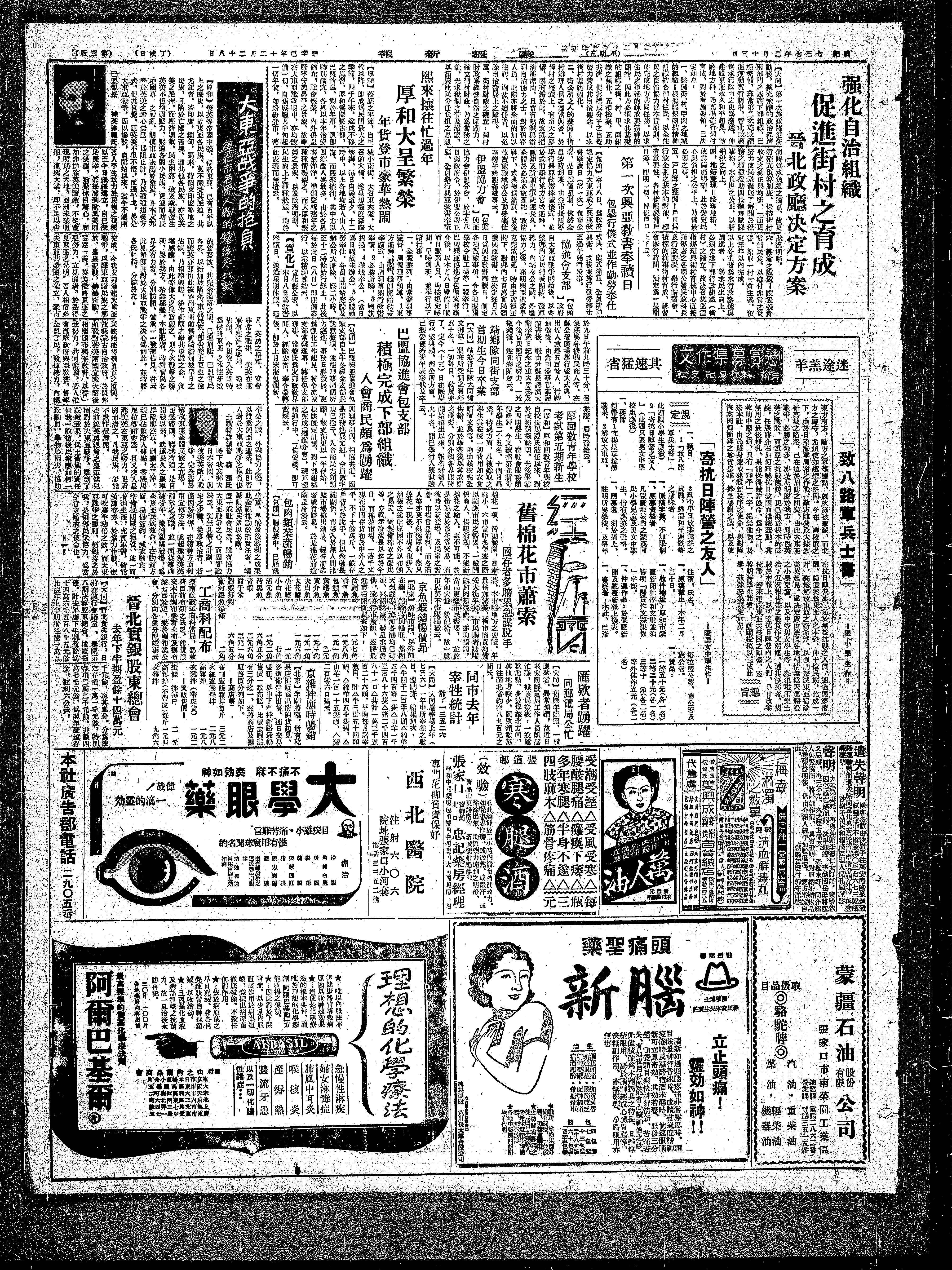 【厚和】英美等帝国主义侵略东亚也有百年以上之历史,以故东亚各民族,莫不深受其压迫,其尤钜者,若印度、缅甸、马来,荷岭东印度等地殖民族等地之民族,目陷于亡国之苦境