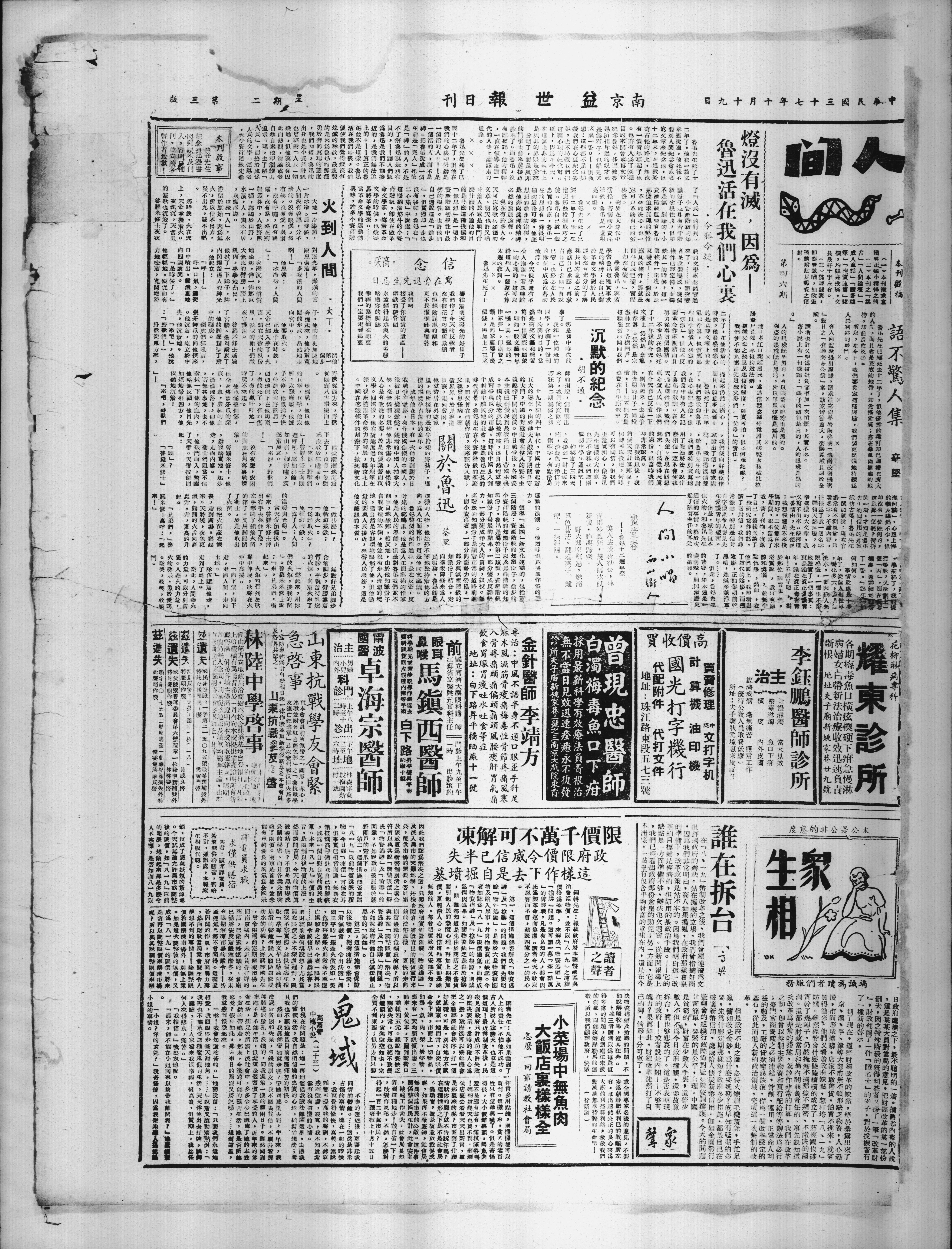 列2 急啓事X友流亡紀念章一盛以竟州戰父降失傳多X連理並附有紅白藍色彩』之「魯抗戰學X杏本會鼠前所佩带之一國形,赤心,