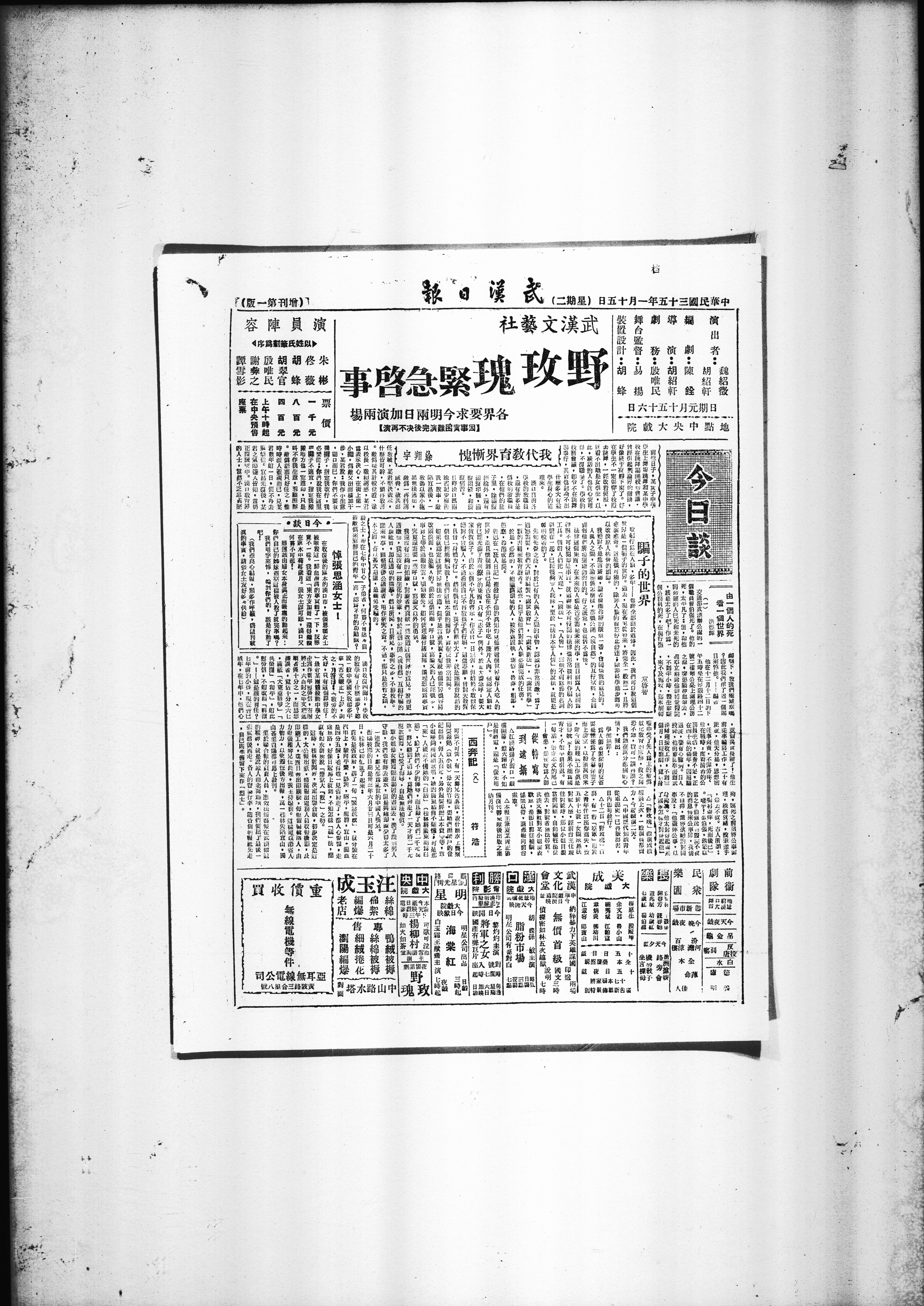 交通部武汉办公处的一个职员曹伯强死了。他的死,太平凡了:但,和他同命运的人已死和未死的,该是太多了吧!