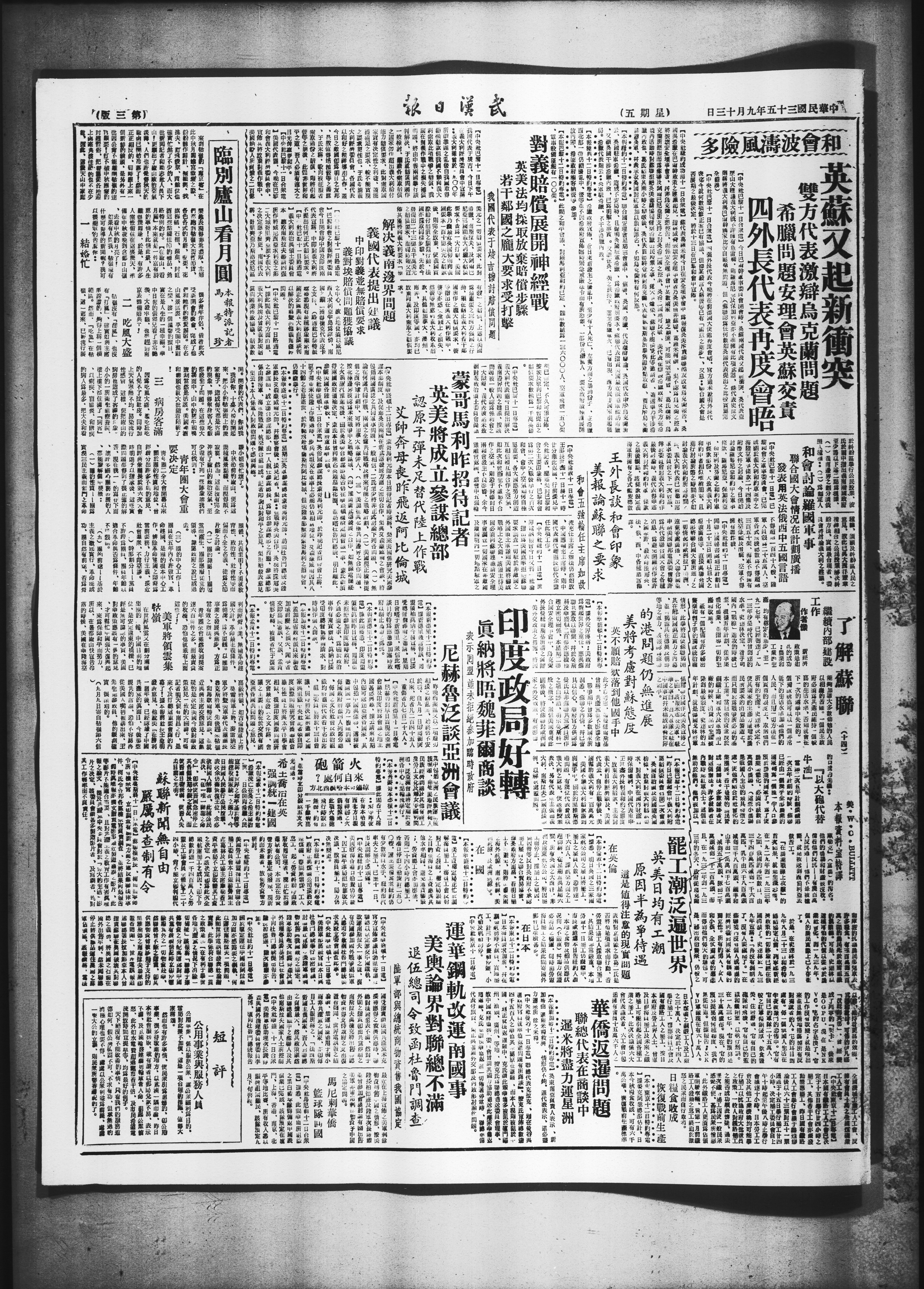 十一日】巴黎和會之對我評骨彩立會今日開會時中国及印技