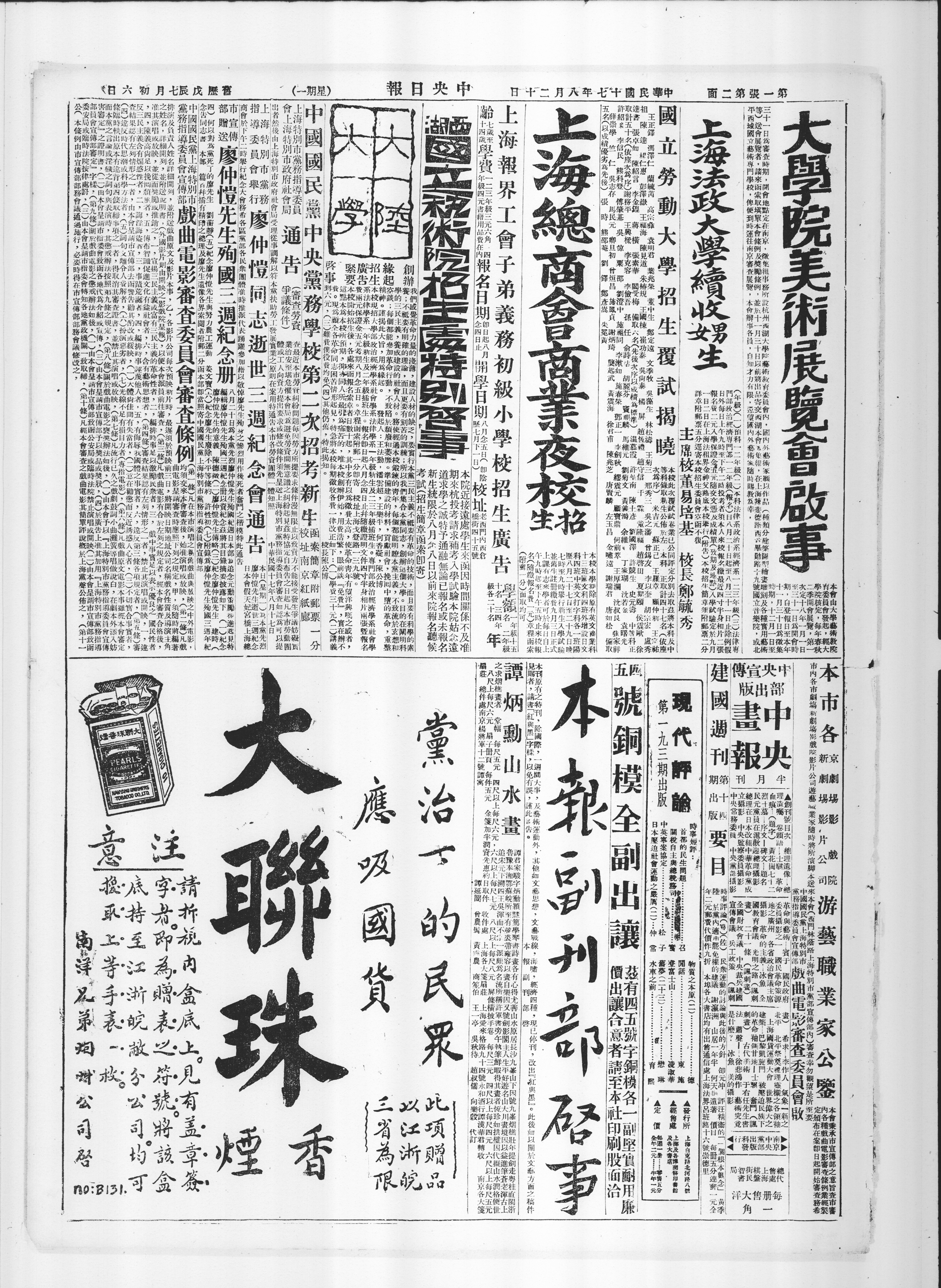 中国国民党中央党务学校第二次招考新生