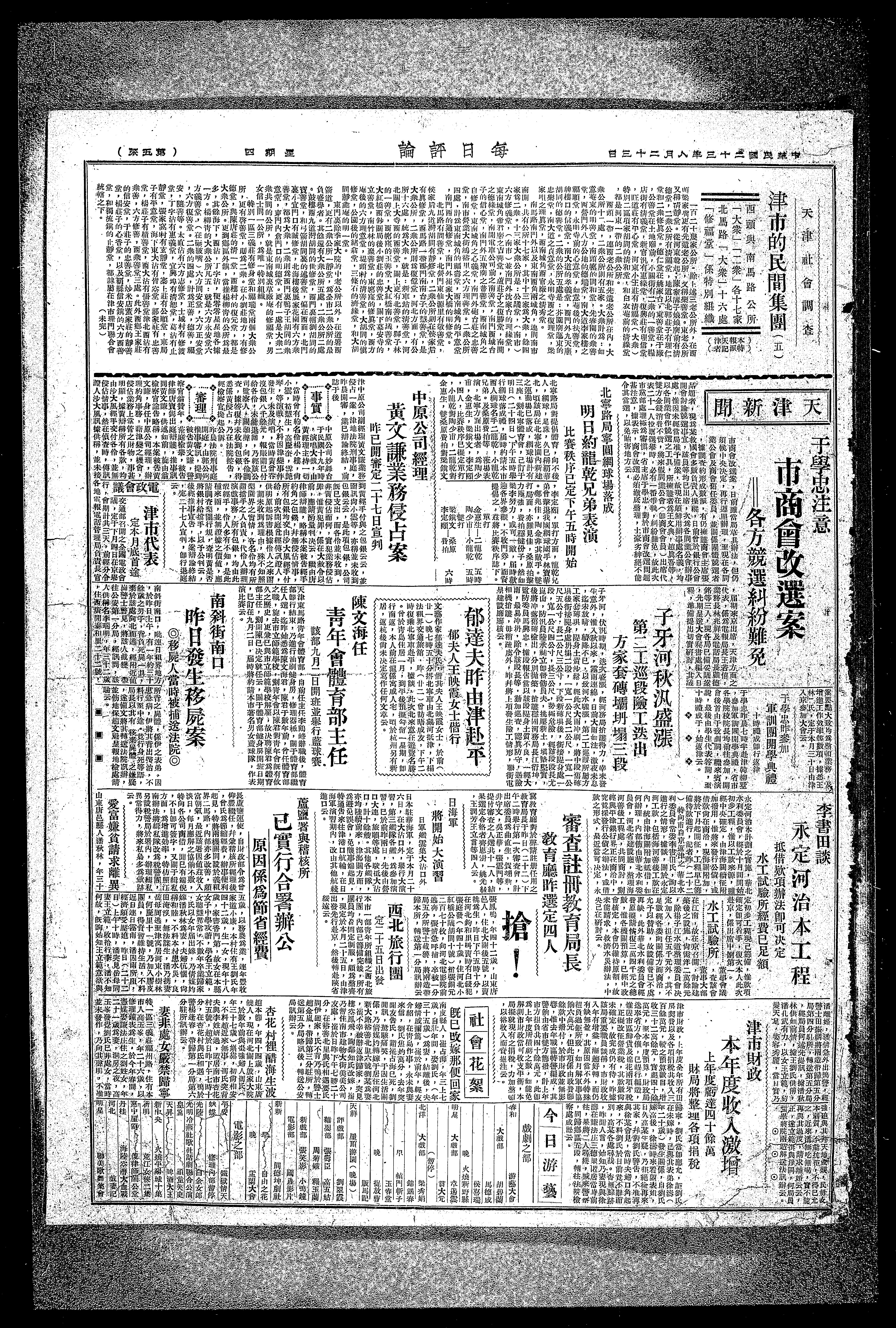 天津東馬路青年會體育部,自前任主任李鹤峰辭職後,