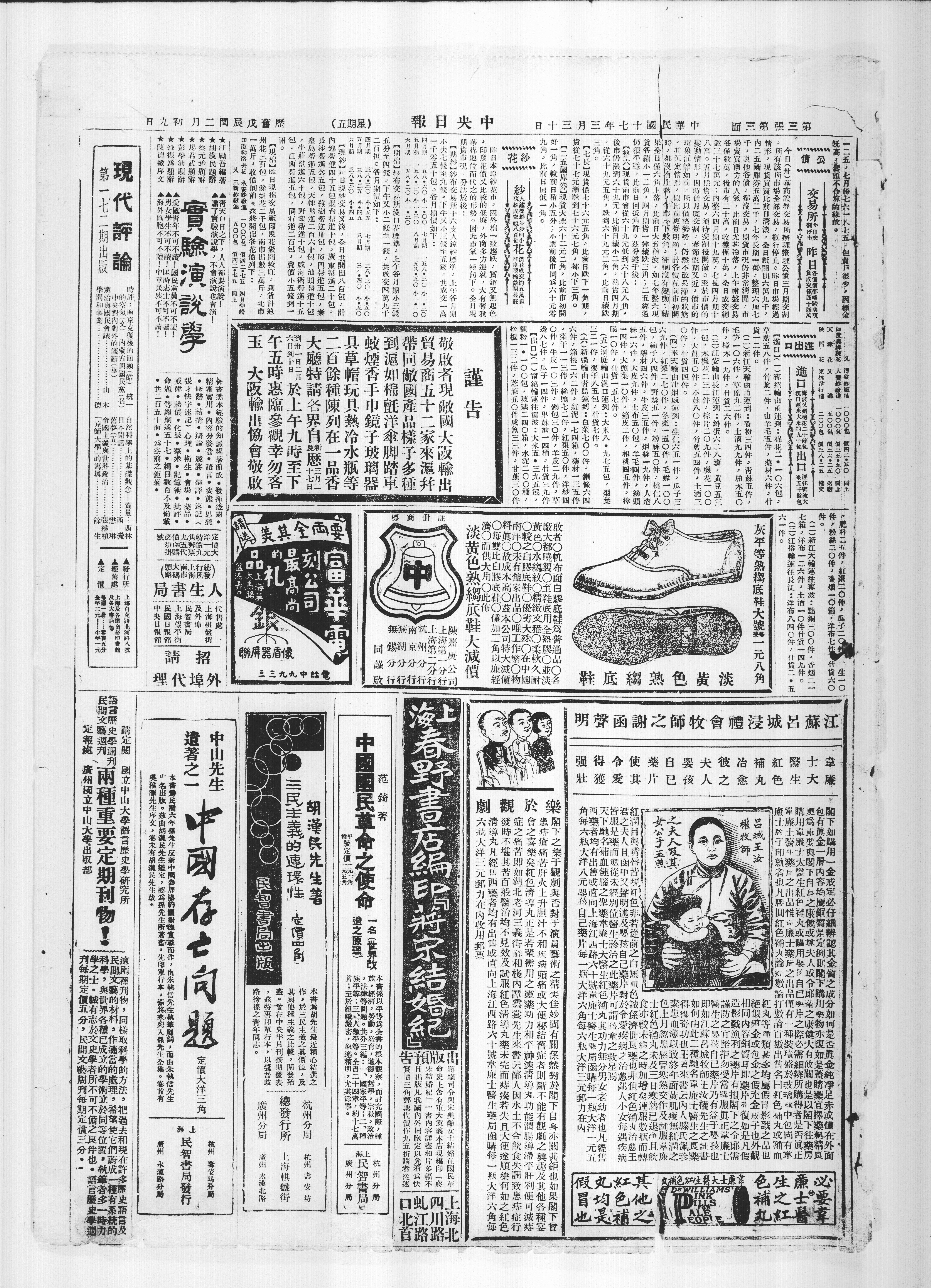 五件。藥材四六件,牛皮三五件,烟释一九件,人造
