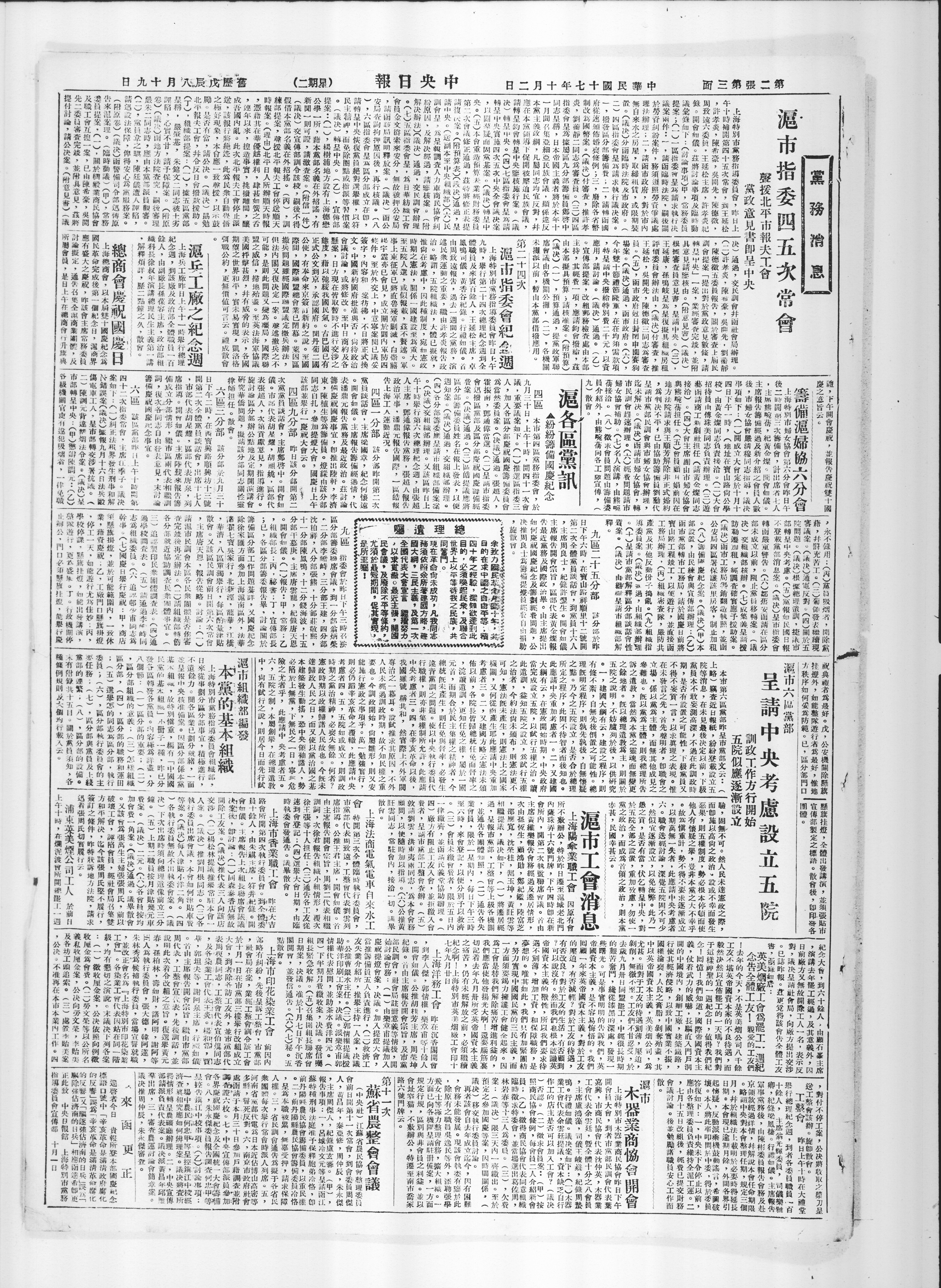诉之遗教,当然爲本党之灵魂而无变更X於五院全部之设置,重加考卢,勿使一