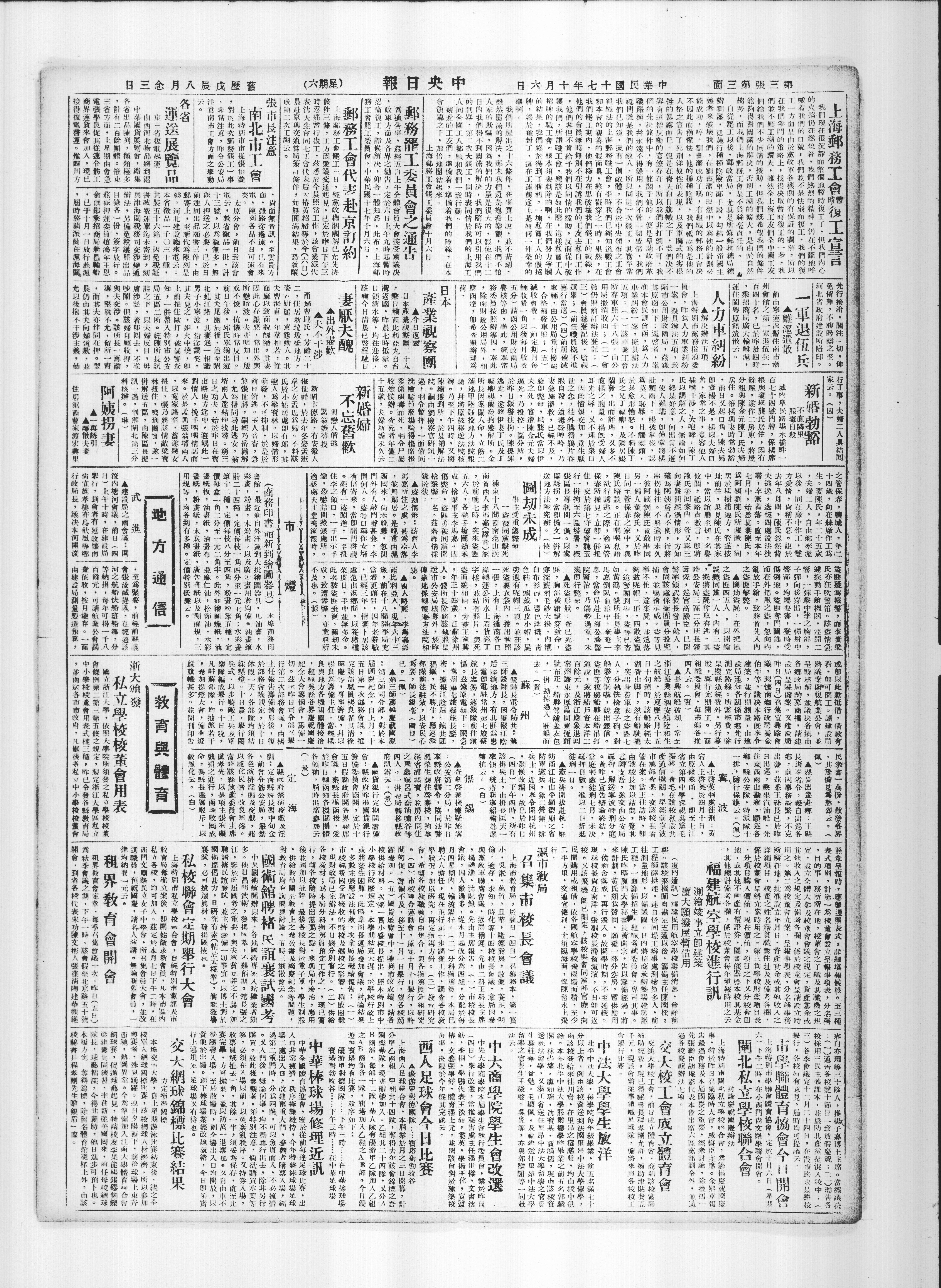 政革方面及各界之糊告,定於六日上午九时起X时