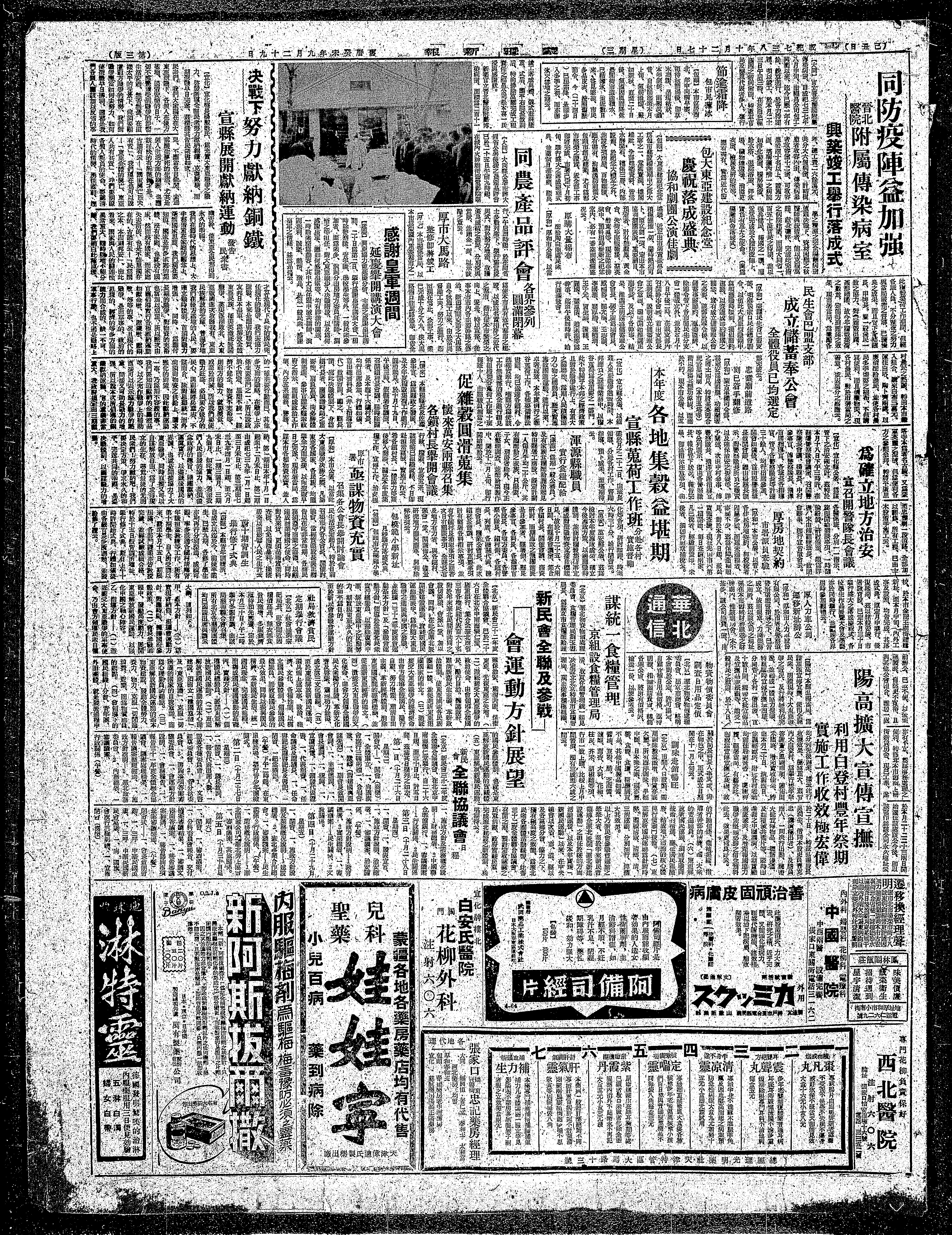 【包头】本市位居西北,年中向称早寒,每待秋节过后,即草木凋谢,呈现枯状,本年气候,则 异 昔,自秋节迄至本月上旬,气候温暖,俨如新秋,直至二十日后,气温因风而降低,晨间街市道途积水,已结薄冰,迨近数日来,益见寒凉,市民多易皮衣,按照旧历节令,今(二十四日)已届霜降,是即步入冬季之初,而亦即冰天雪地之期云