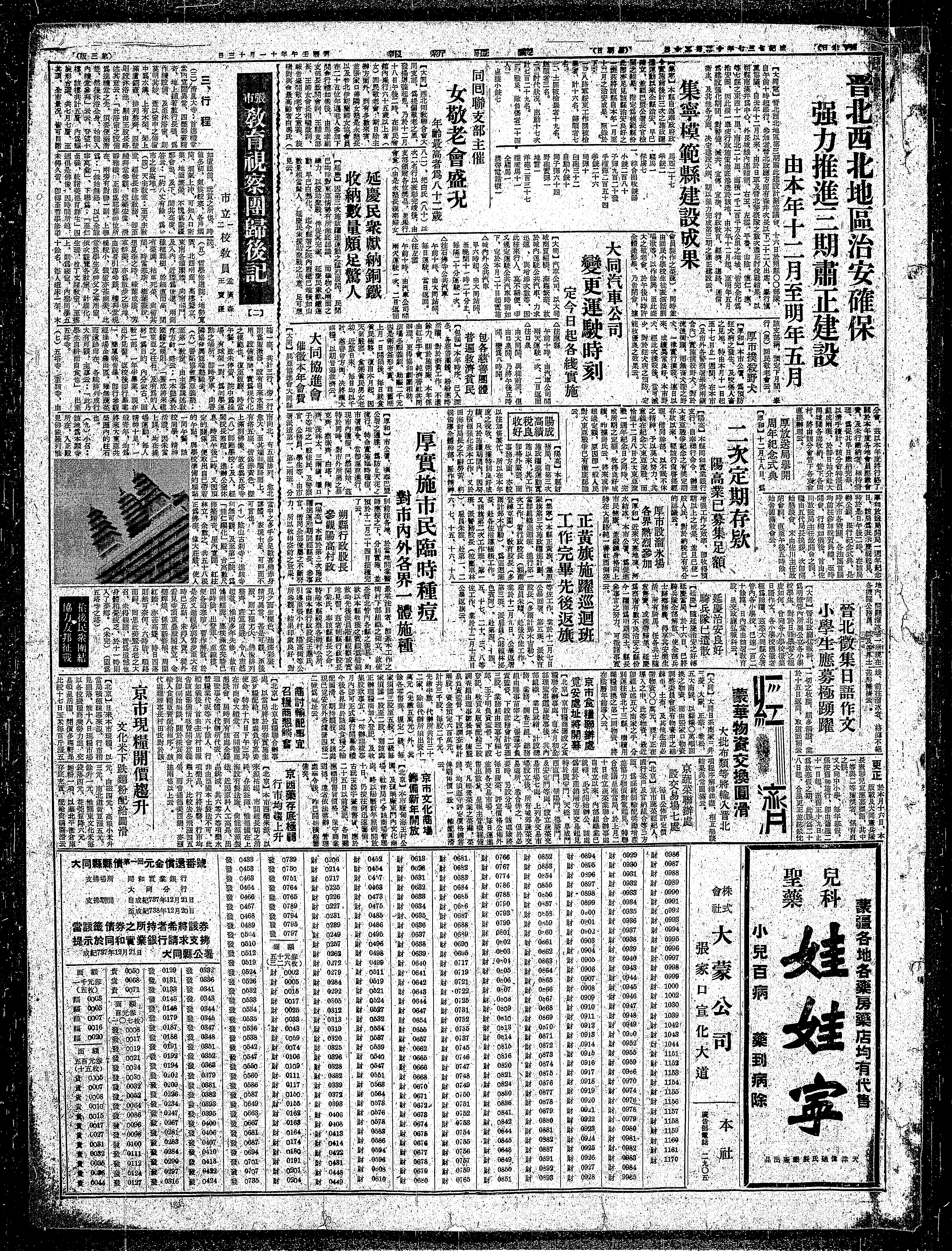【包頭】本年時序,已入深冬,各慈善團題、紛紛應時活躍、對於濟費工作、不造餘力、關於施削廠,本年係由紅记字會、純濟等社共同辦理,更得協和劇團相助,演嗎冬版義劇、助顯二千元因是朝唐益形充賽,自蓄歷上月一日開鍋後、每日就食貧民極夥、復自本月起、因天氣酸恶,食销贫民男女老幼,近款日來、每日均以千計、慈善會方面、决將擴大崛粗、以期普遍救濟云。