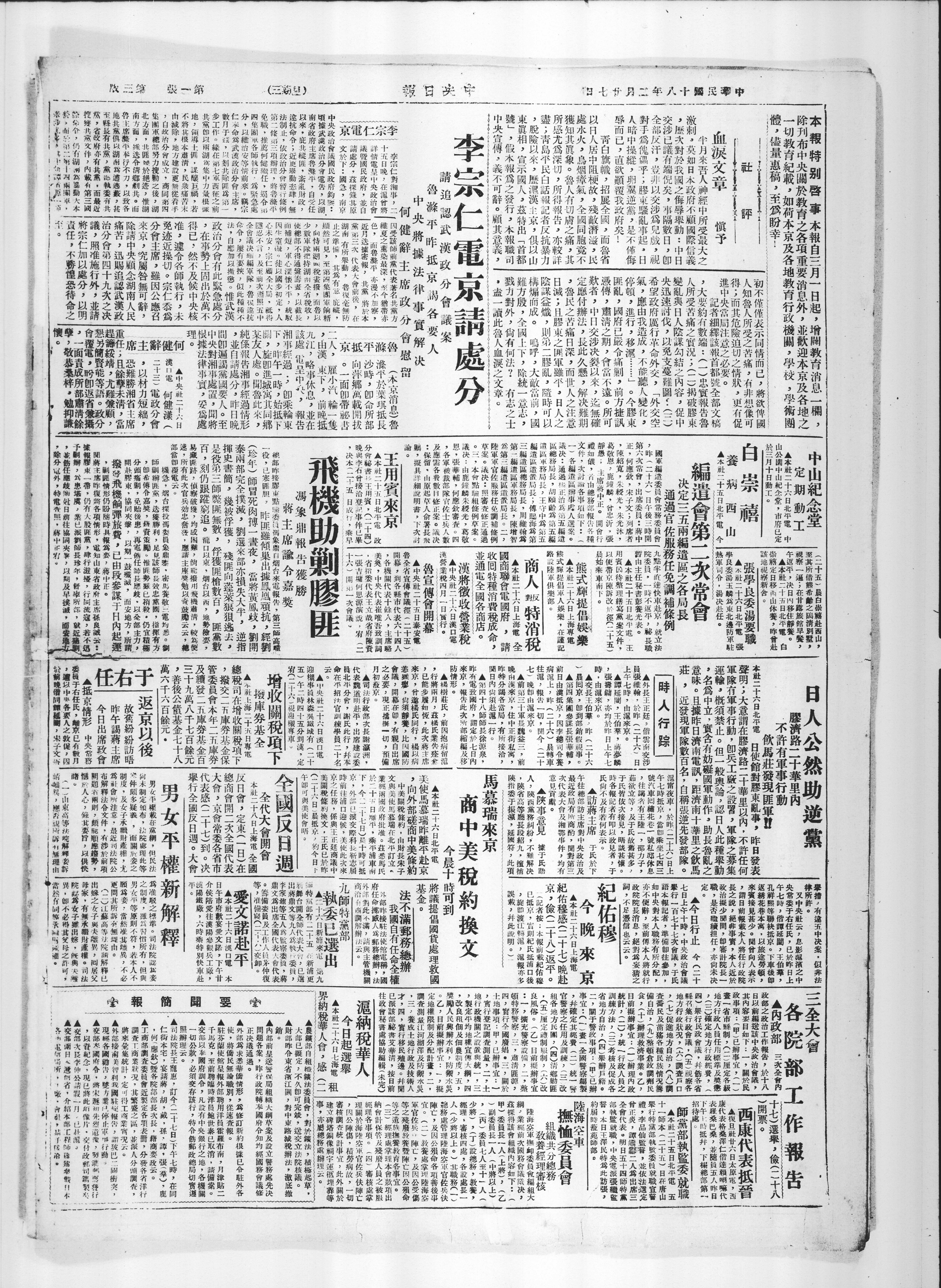 中央社二十六日汉口电,汉营业税四月一日实行。