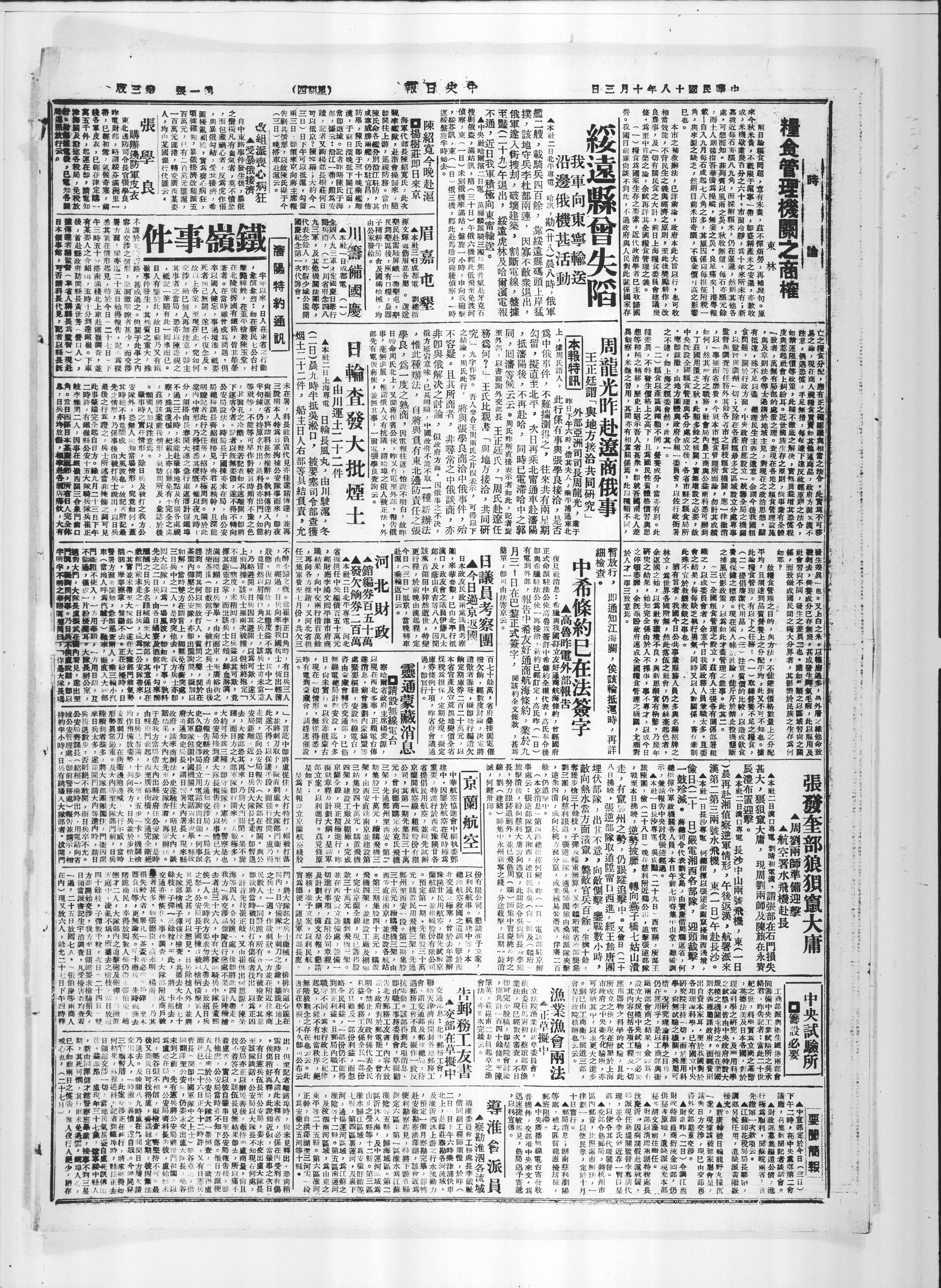 送我军向东宁输沿边俄机甚活动本流二日北平专电 哈讯,勘(廿八)晨八时,俄军舰二艘,载骑兵四百余,靠绥远县码头上岸猛俄军途入街捜劫,破坏建筑, 割断电线,盘据扑,该地守兵李杜部两连,因寡不敌众退出,艳(二十九)午退出, 绥远虎林及哈尔演电报不通,近日我军积极向东宁输送。