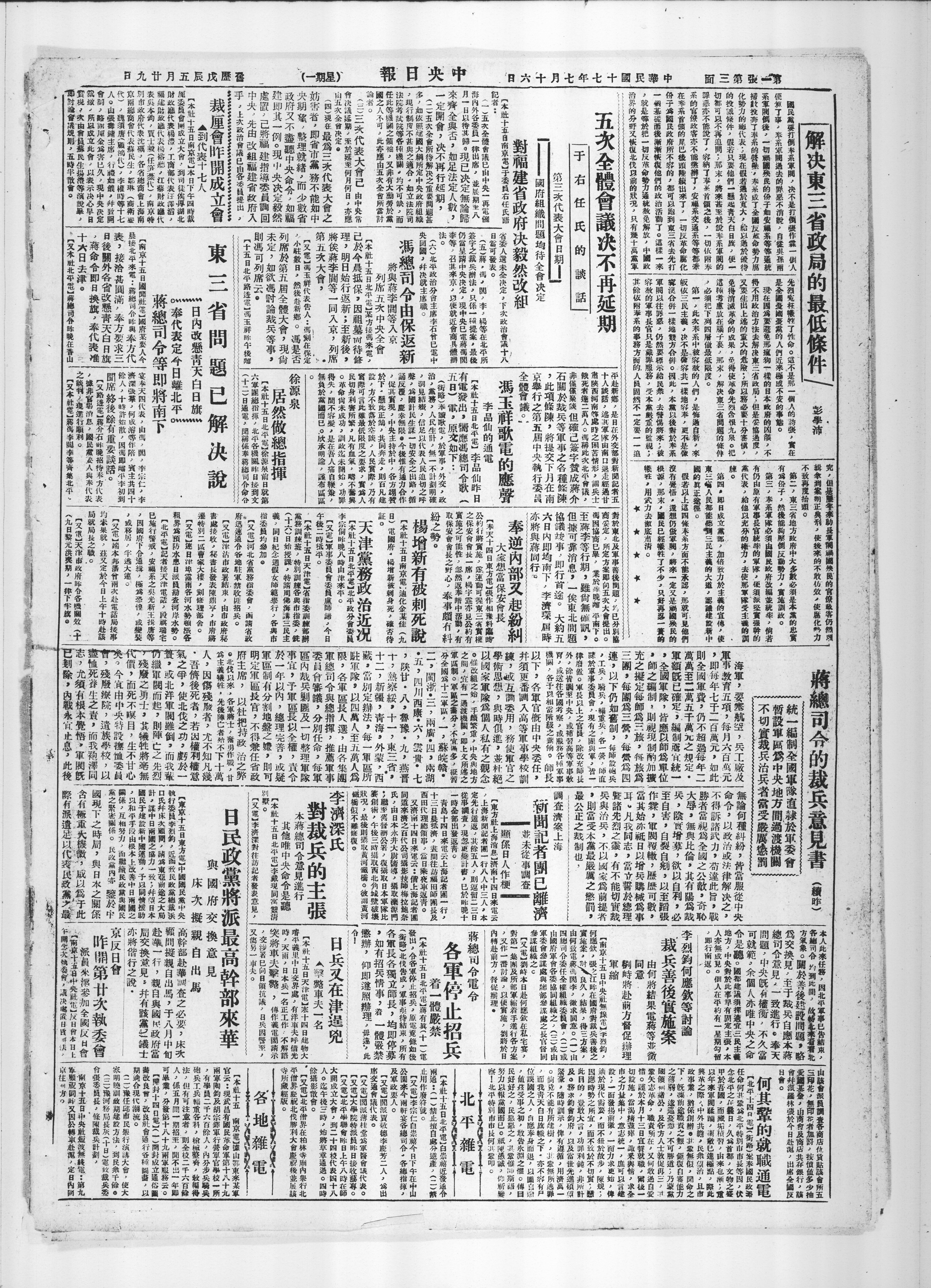 国府组织问题均待全会决定