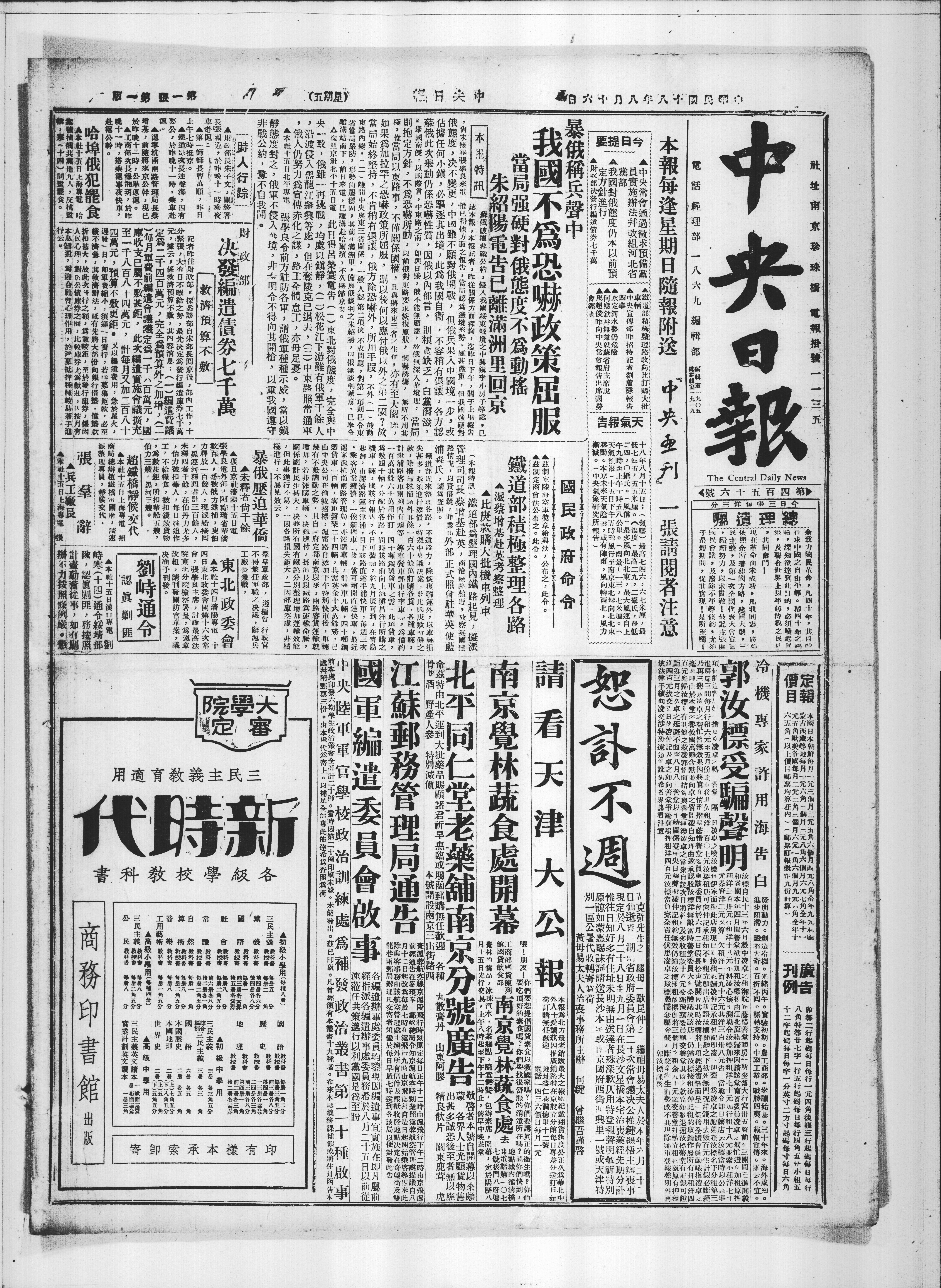 暴俄称兵声中我国不为恐吓声中屈服