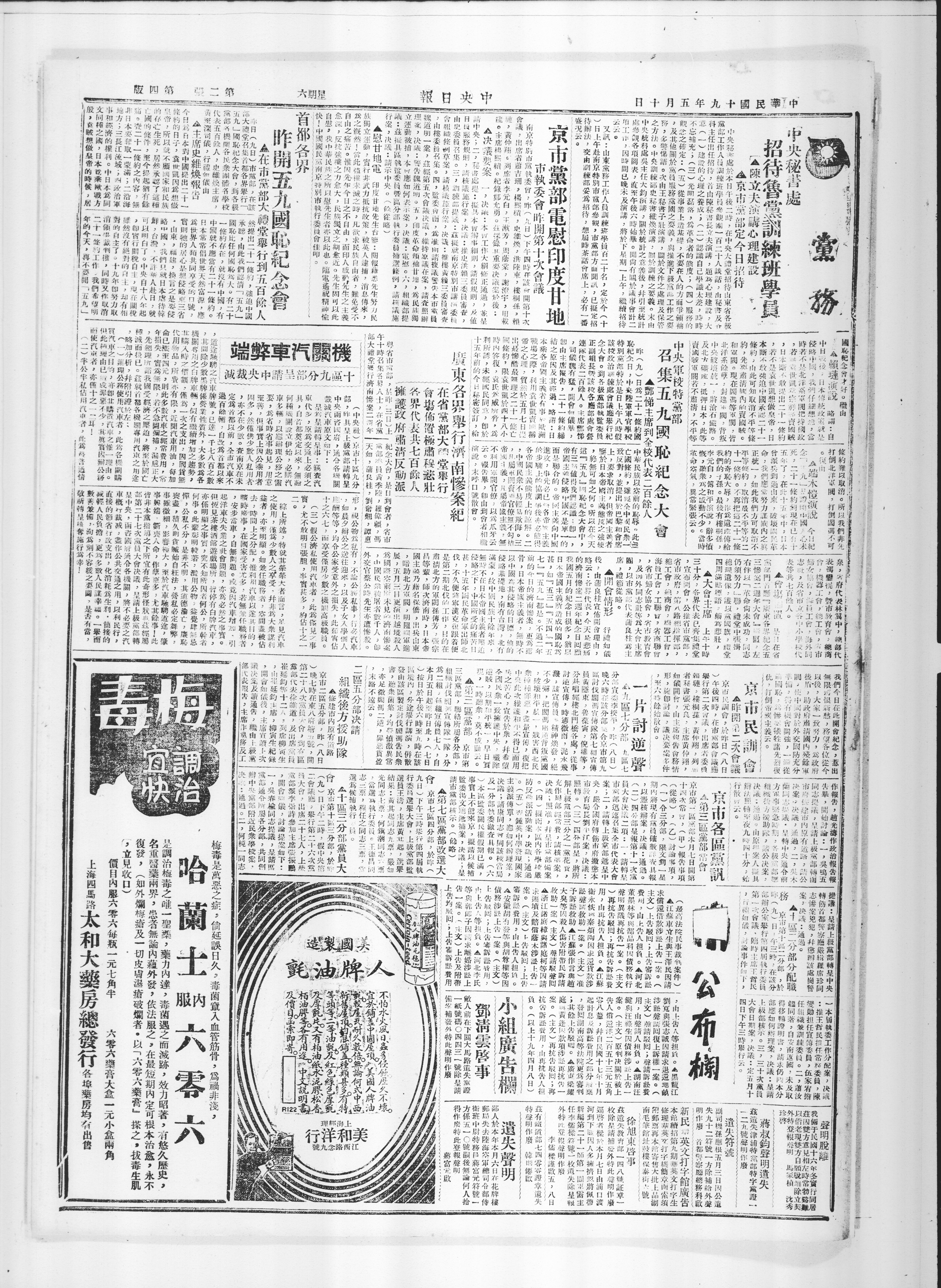 中央军校特党部召集五九国耻纪念大会