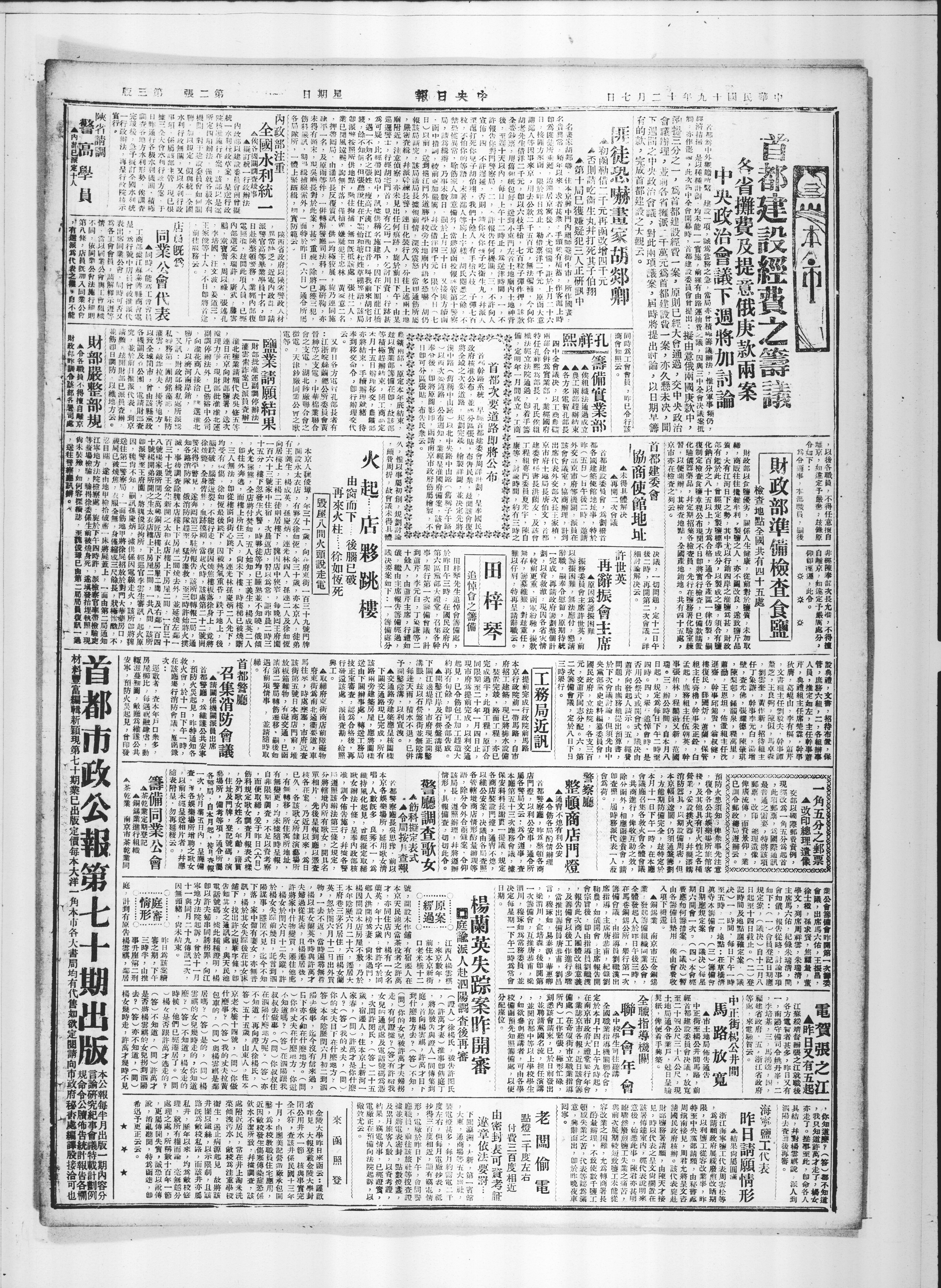 於昨日午三時:在國民政府内