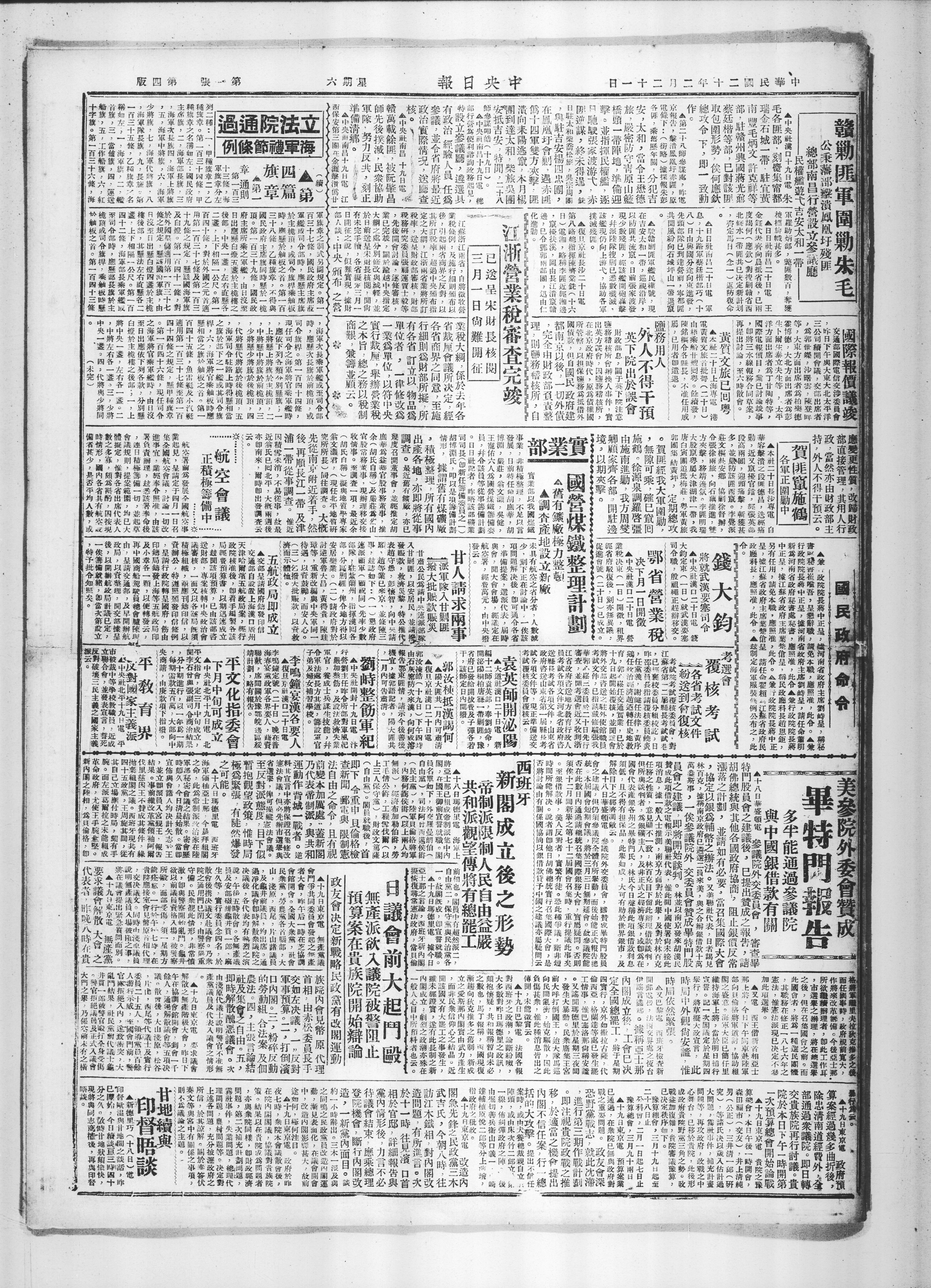 赣剿匪军园剿朱毛公秉藩击溃凤凰圩残匪总部南昌行营设立参议厅