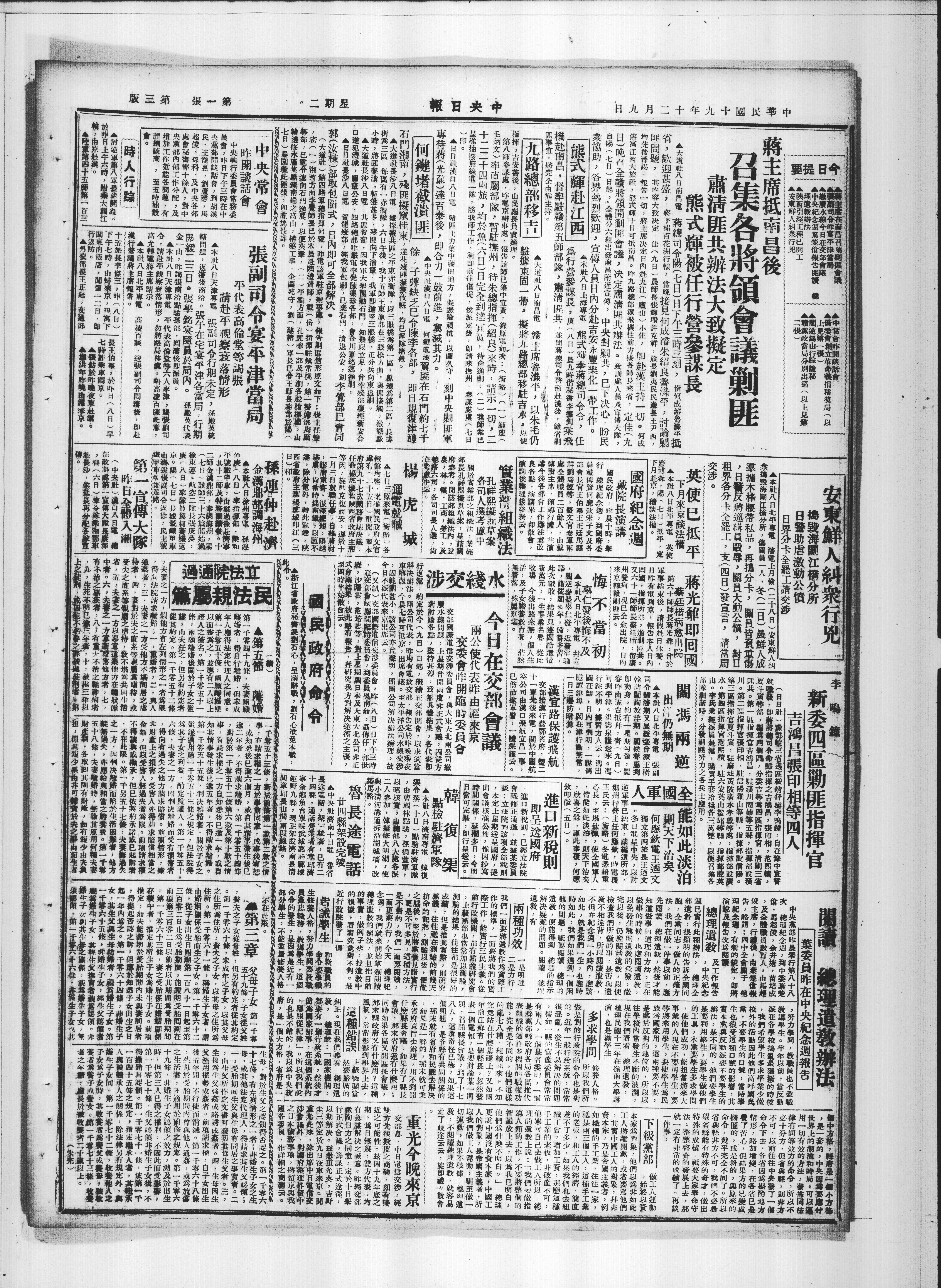 ,冬日電呈中央,以討如