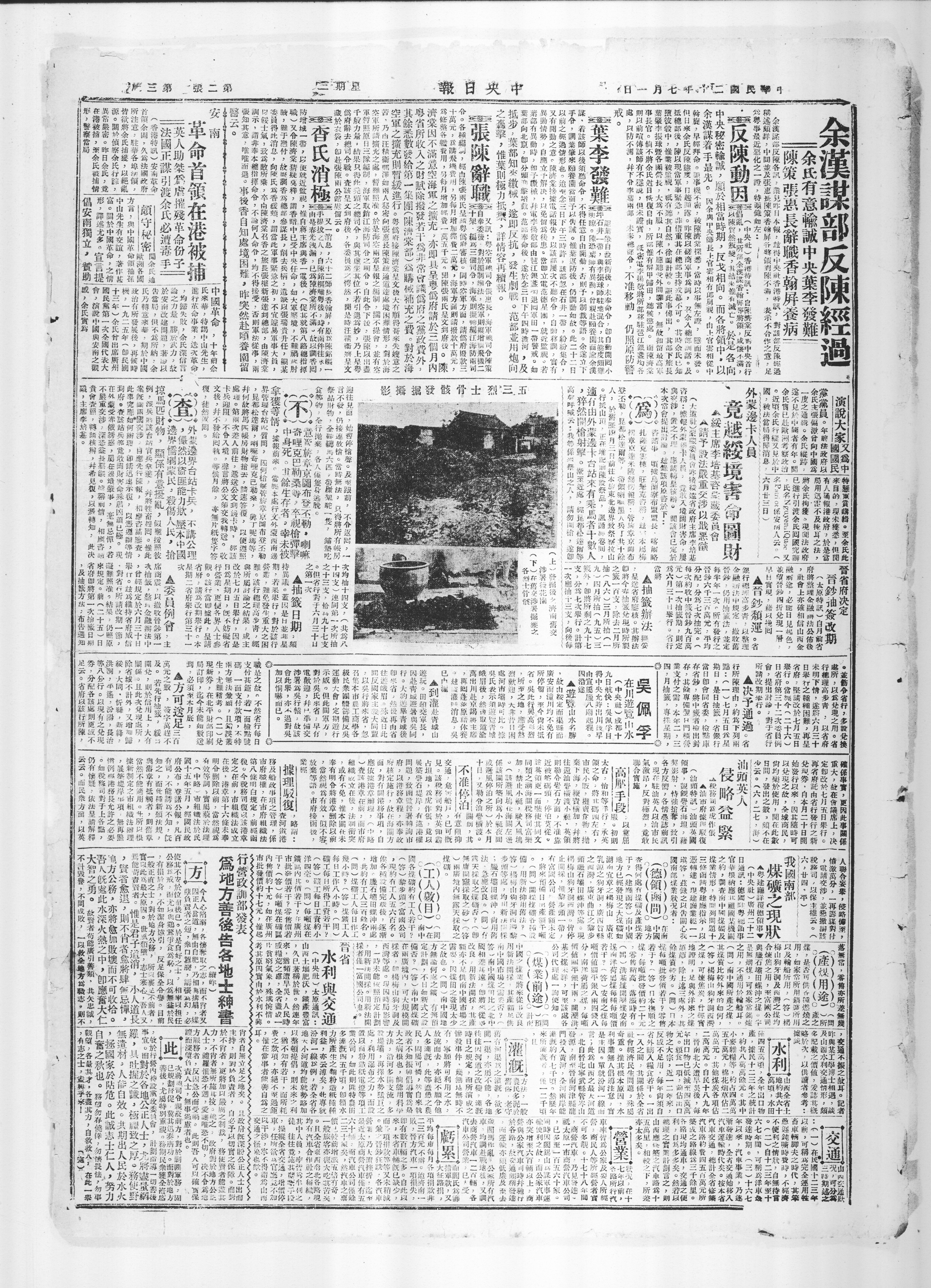 余氏有意输诚中央叶李发难