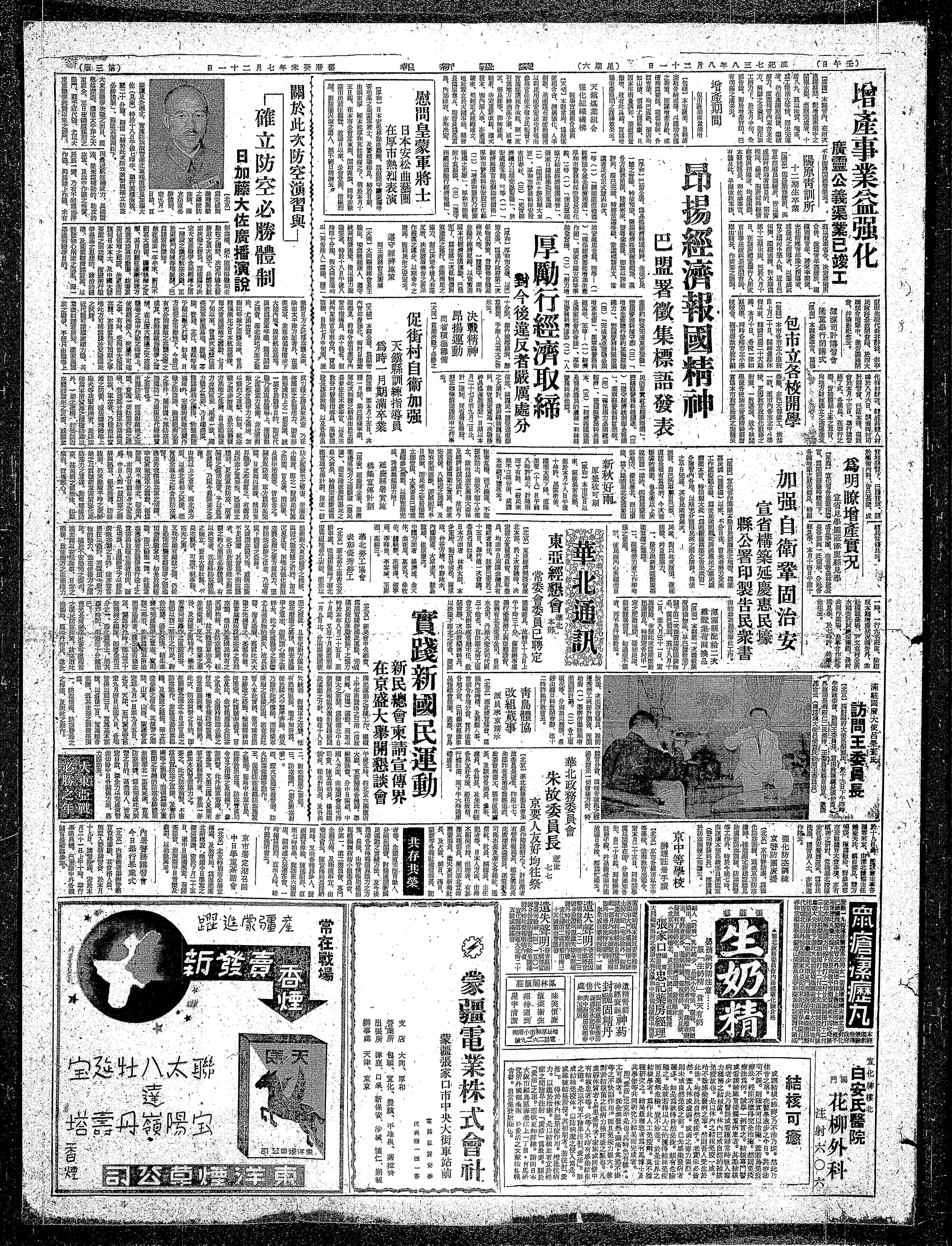 【廣證】本縣管內、在四次旅躍期間、對增產本業中之開掘水渠、至期完成者,十居八九、茲以地質、地區、或工程浩大等情,而未完邀者、仍在流翻期滿後、繼續努力、廣靈有管內東台東北方,與誌之公義集、刨花加工努力下,於本月中旬、金部告映、對於增產實爾。已有英滿之成来云。