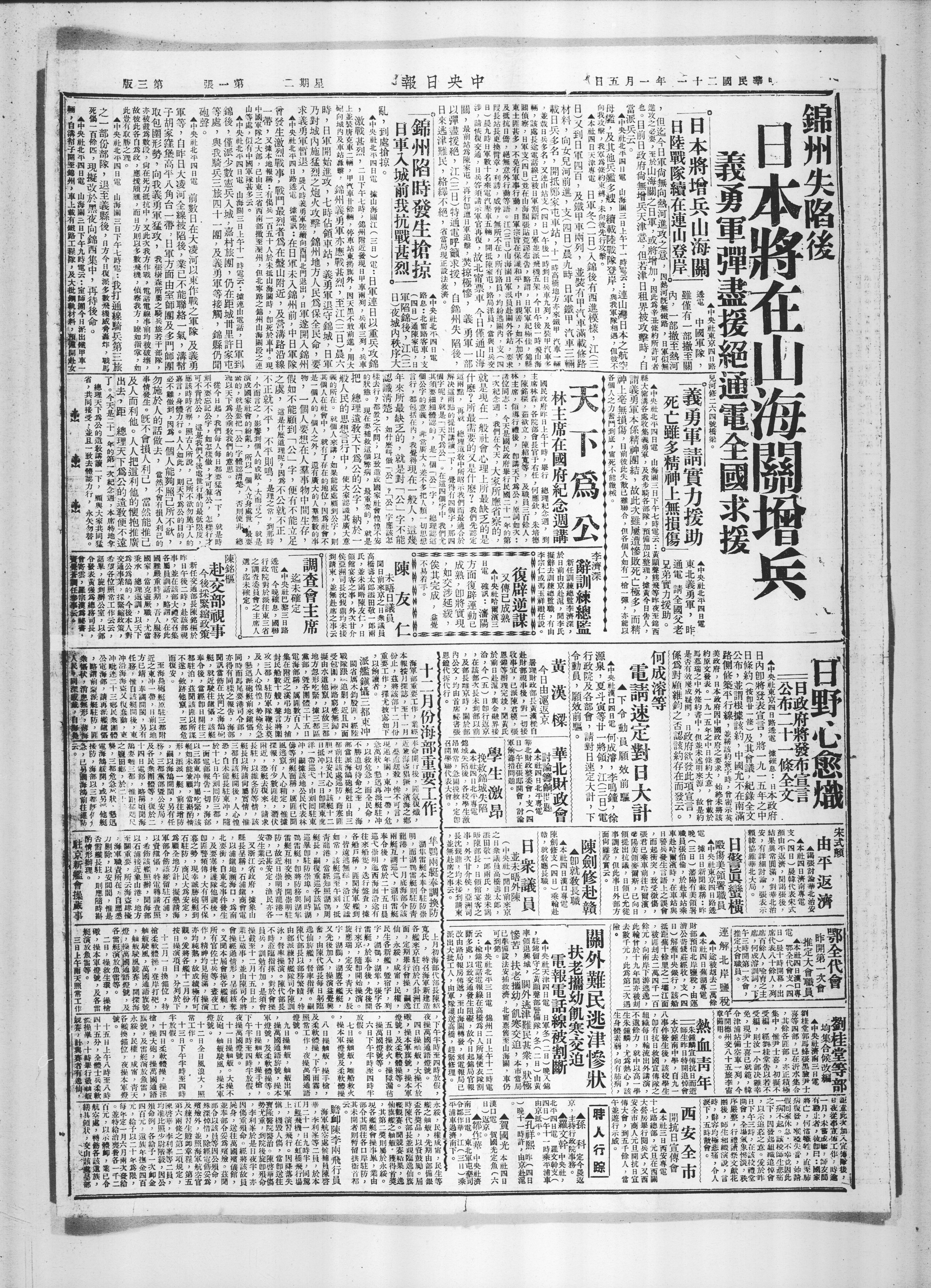 位同志:今天是國民政府行民國二十一年的第