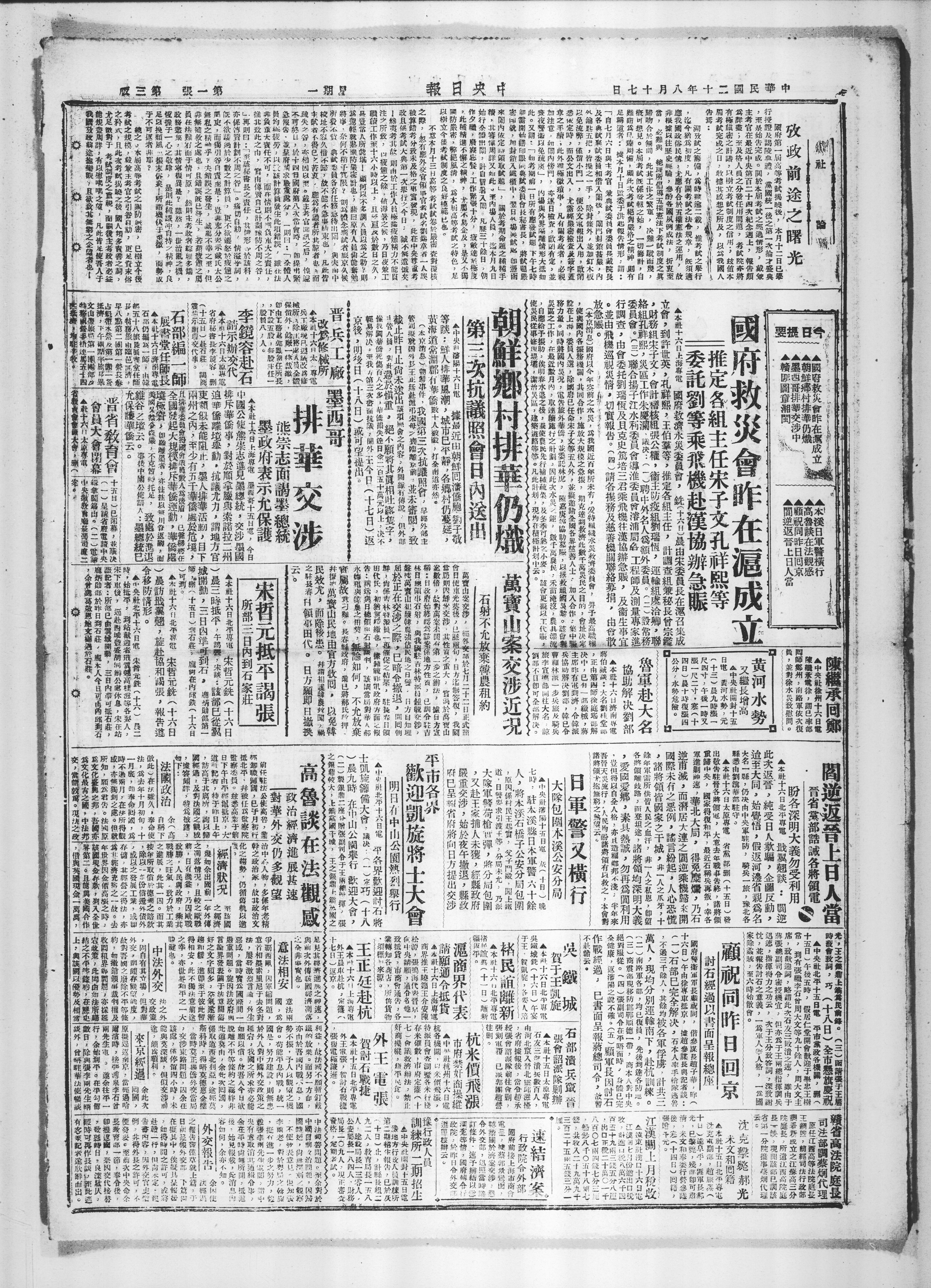 縣悉由劉筑華部駐守。 大名一縣,仍决由中央軍駐防,騎兵一旅,豫北各 迨至大同,始覺悟,假返河邊省親爲名 此次返晉,純受日人欺驕,企圖反動, ▲本社十六日北平專電戢翼翹談:閭逆
