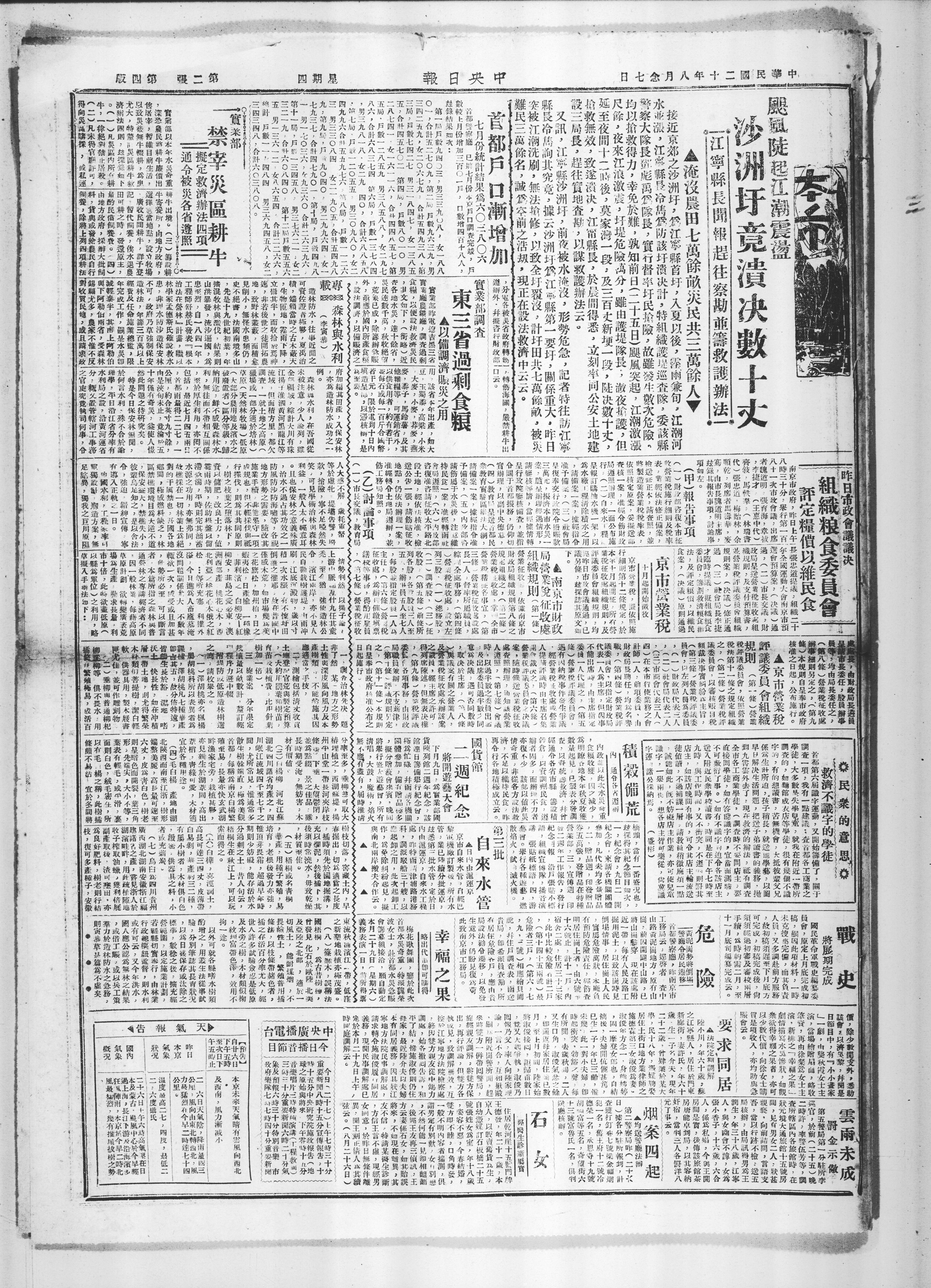 飓风陡起江潮震荡沙洲圩竟溃决数十丈