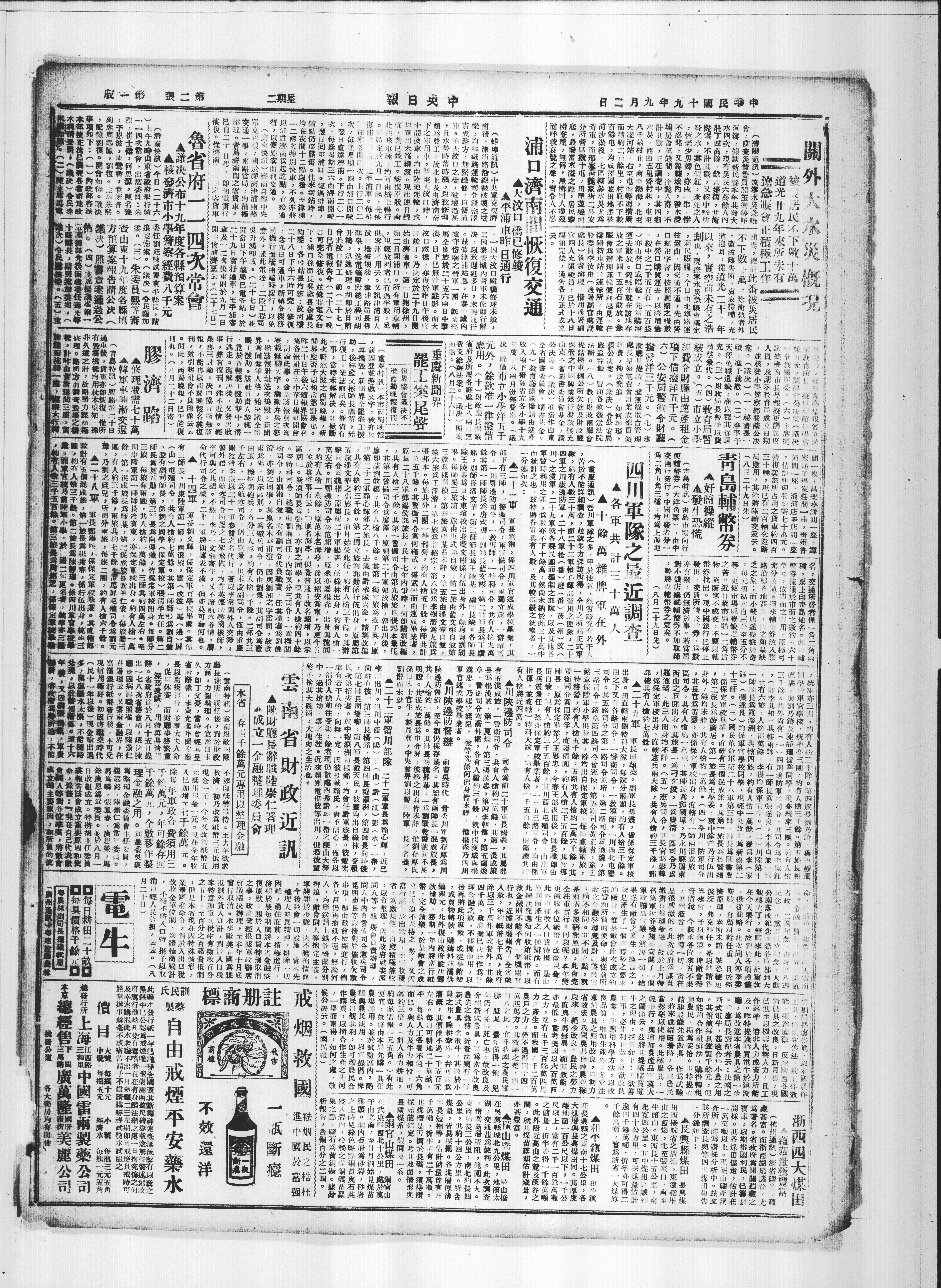 雲南省财政近凯 陳财長崇仁署理 成立一金融整理委員會