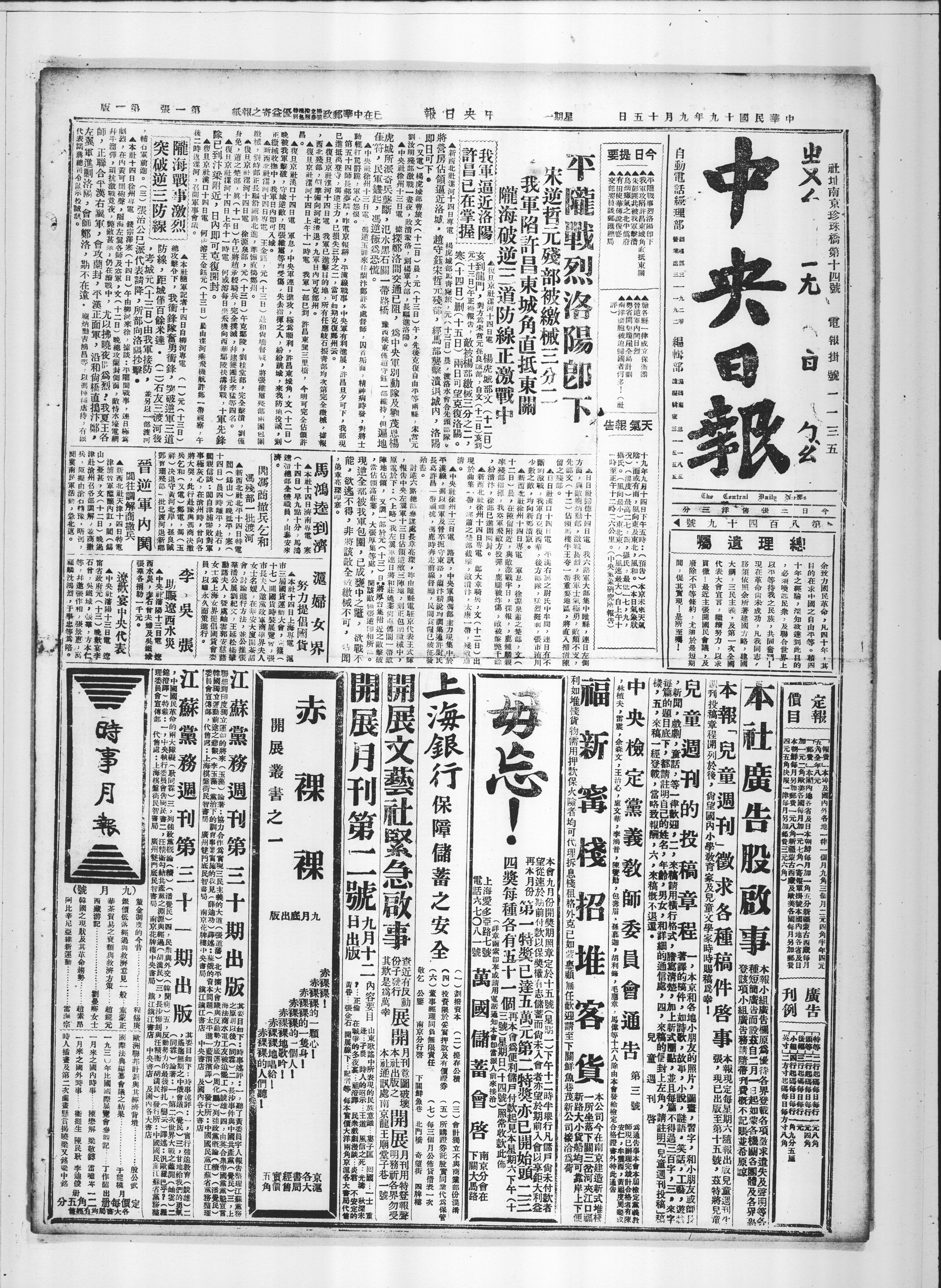 冯残部一批渡河,新西北社北平十四日特电,阎锡山元晚抵平,寒十四日晨四时离平。