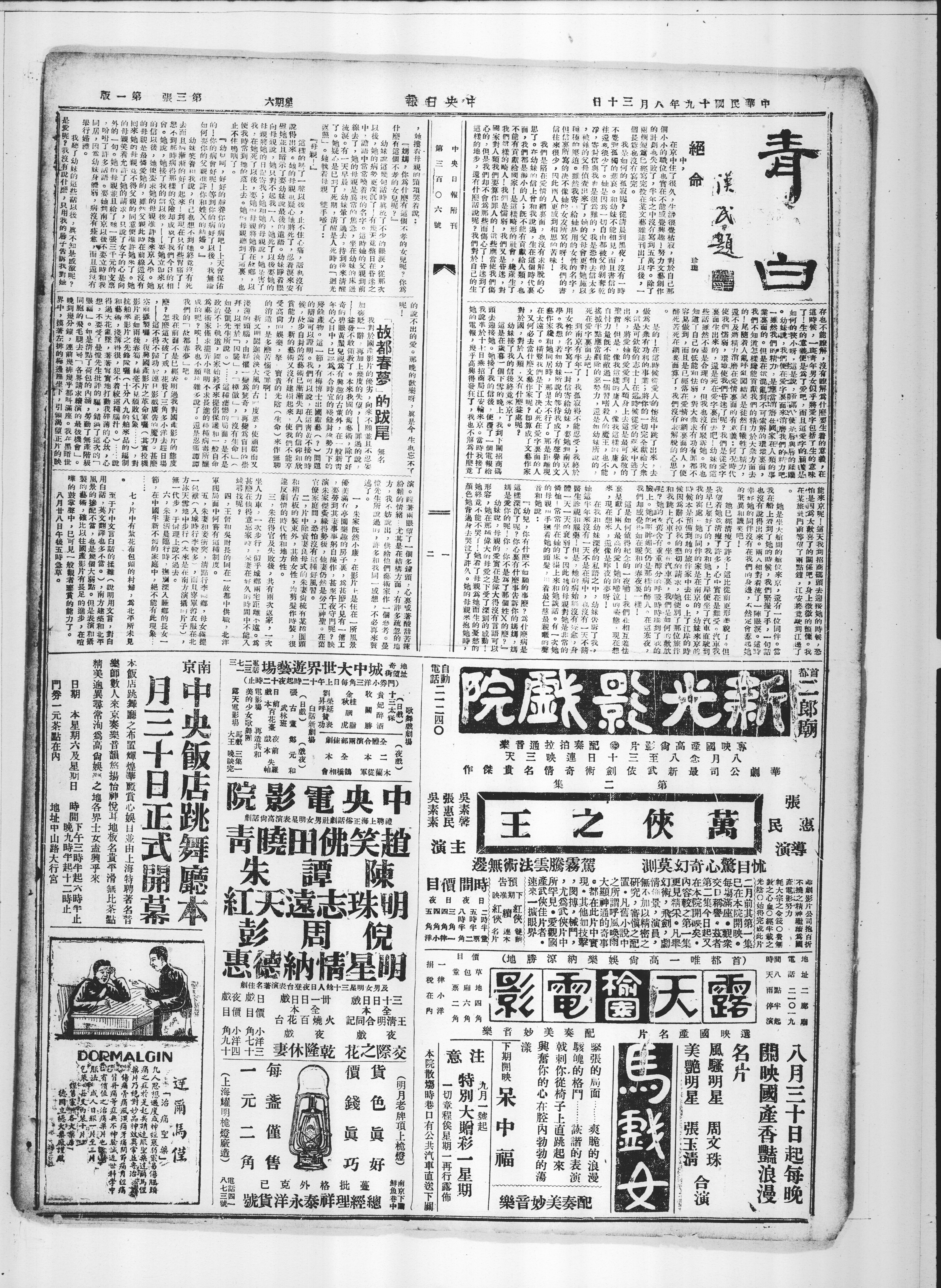 在京中住了很久,生活很觉枯寂,对于自己那个小小的之唯也实在不能感觉兴趣,努力文艺创作。