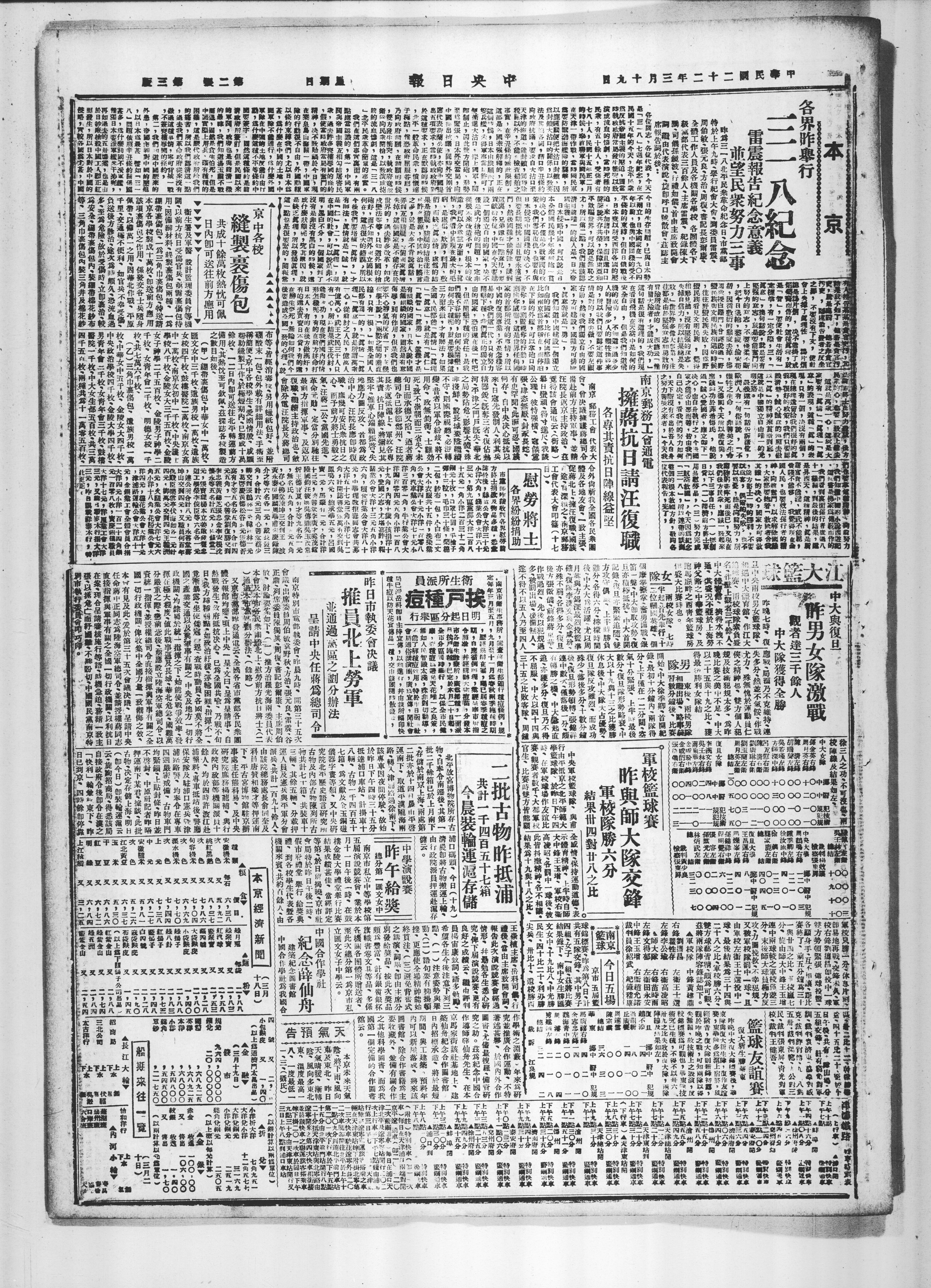 江大篮球 中大与复旦 昨男女队激战 观者达三千余人 中大队获得全胜