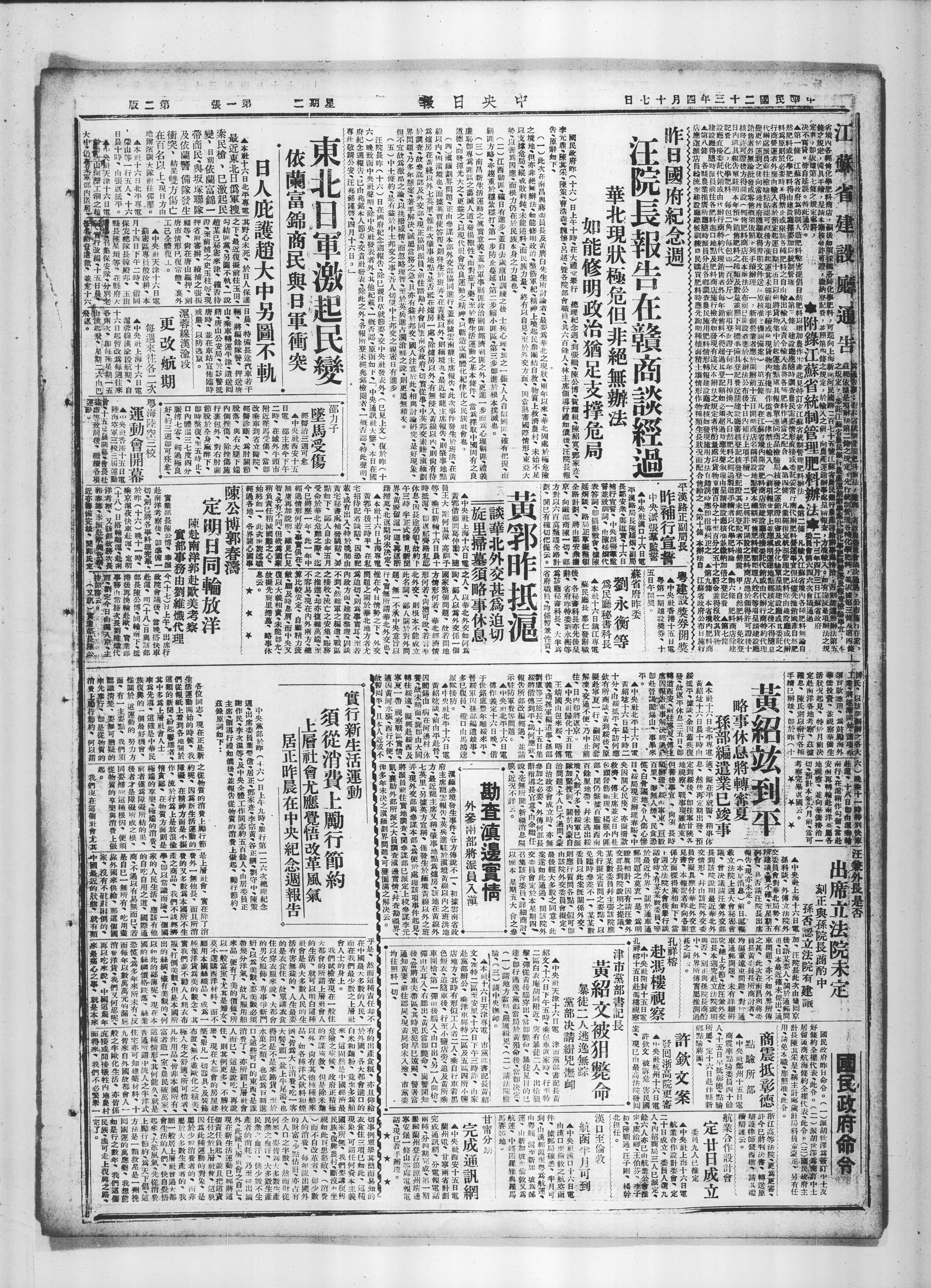 中央祖郑州十五日电
