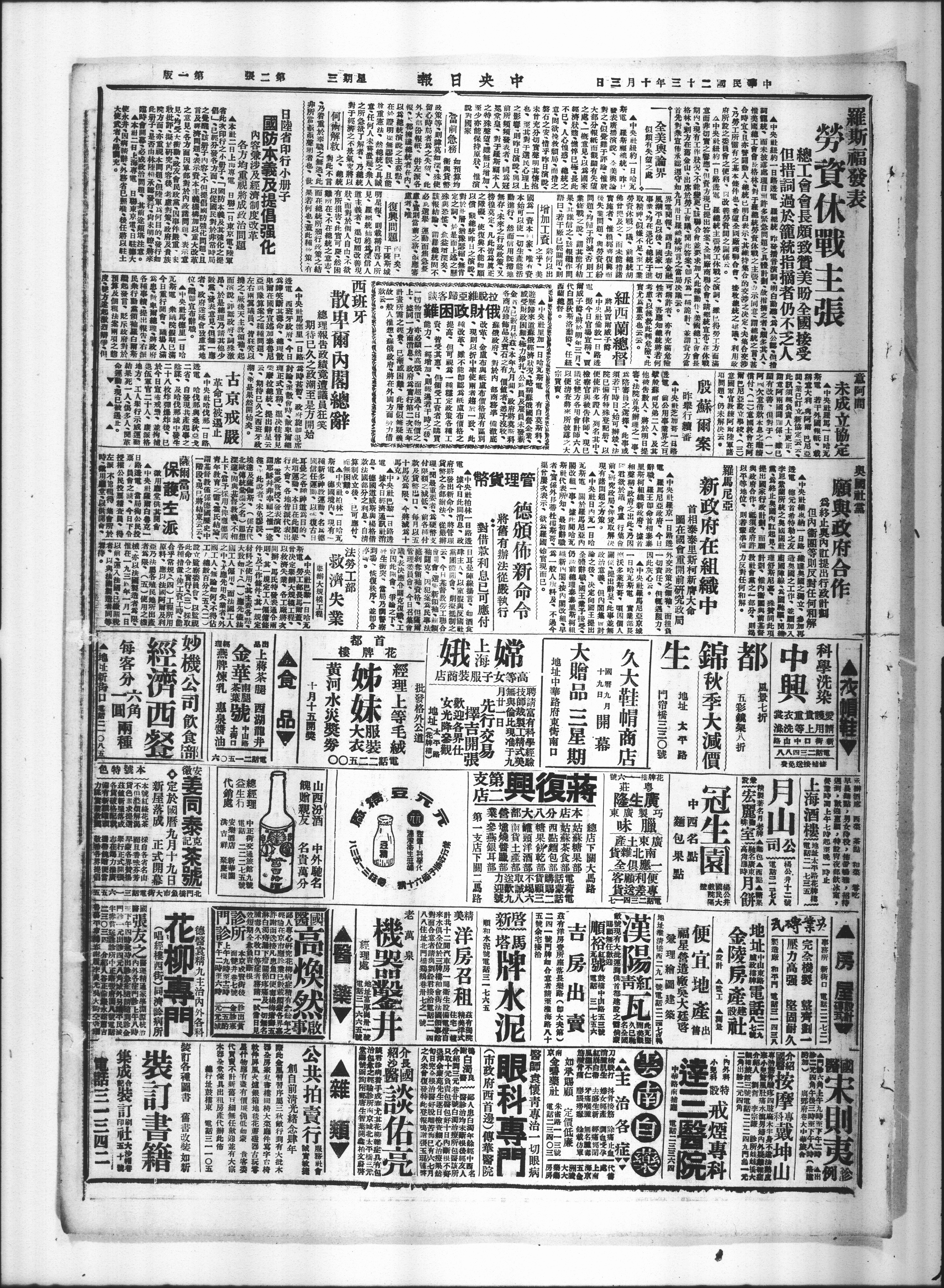 惟美国总工会会长格林对于罗总统劳资休战之主张示同意谓总统之言