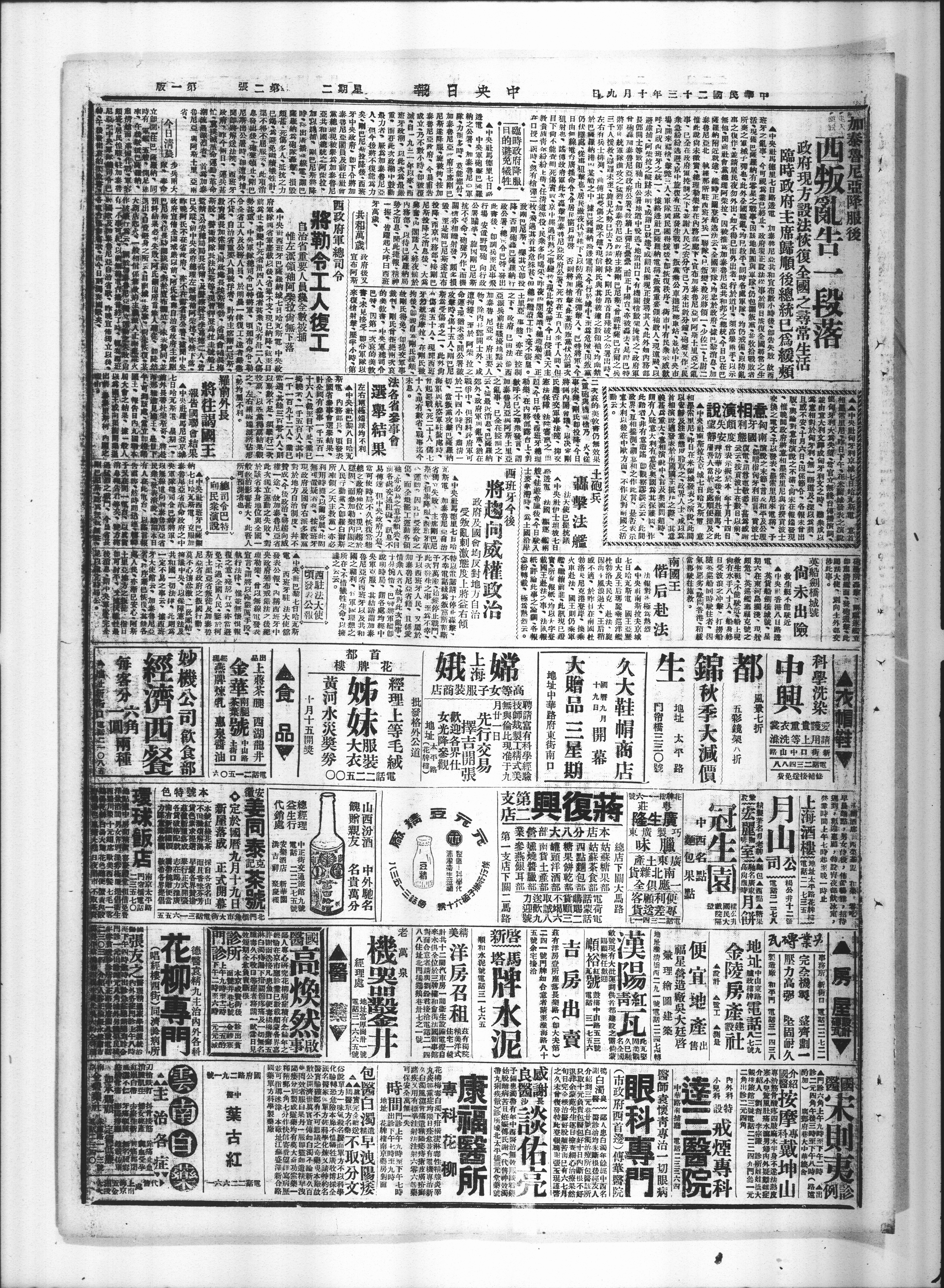 班牙之鼠事、今可写业已移止、政府现正股法事於明日族復全國常之生