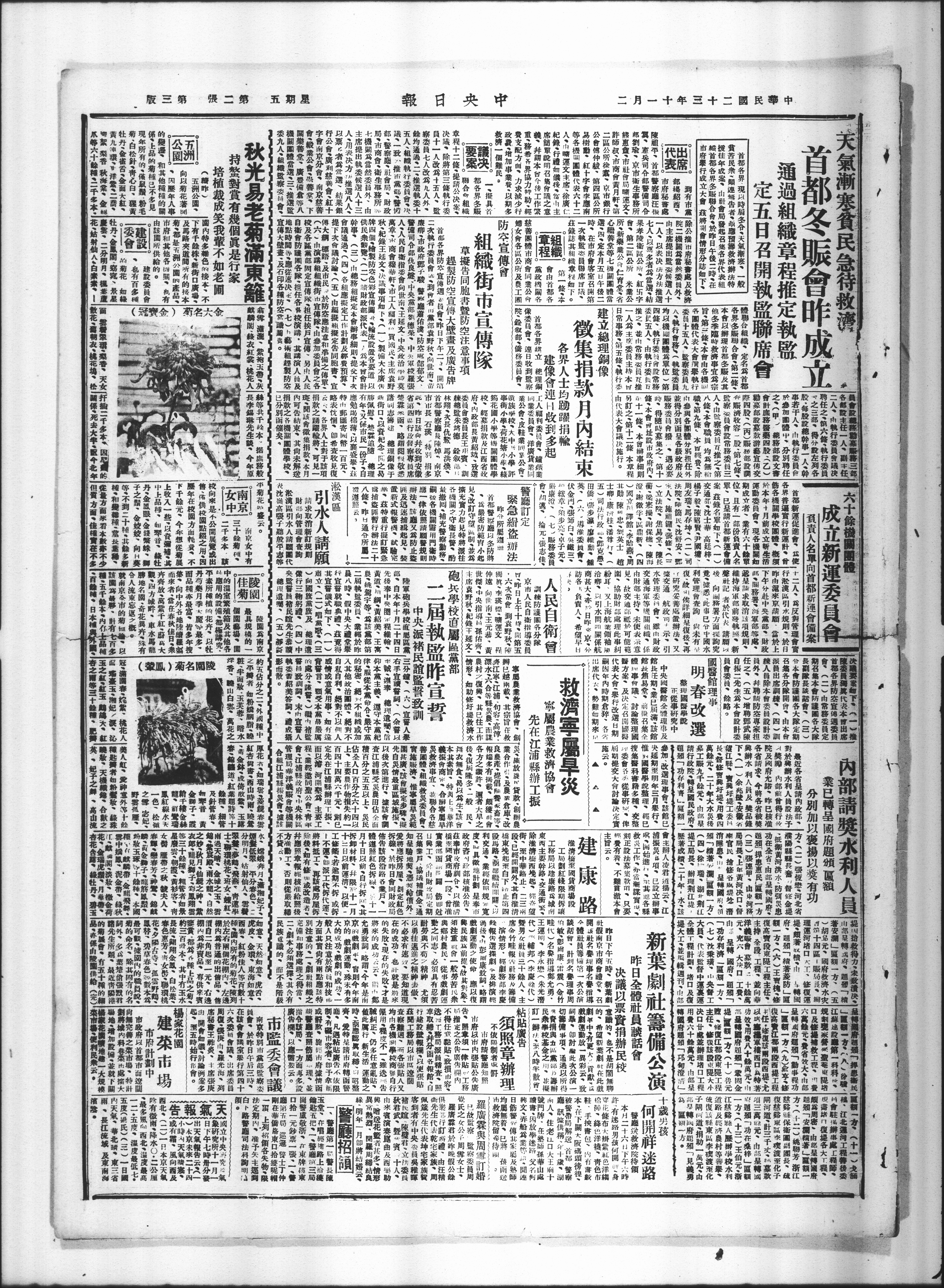 院及国府允·昨已核X功在全省由部呈转国府。