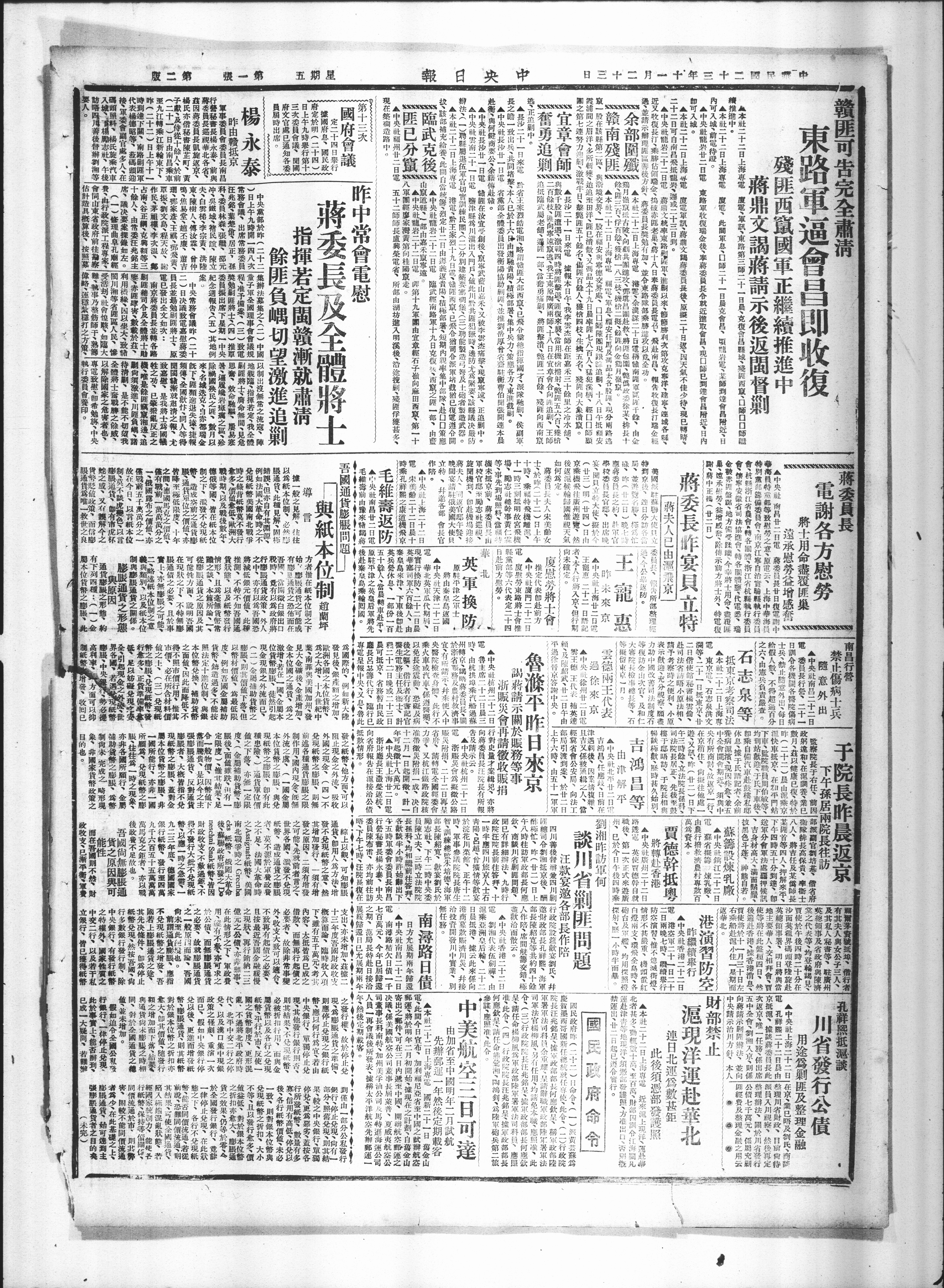 蒋委长及全体将士