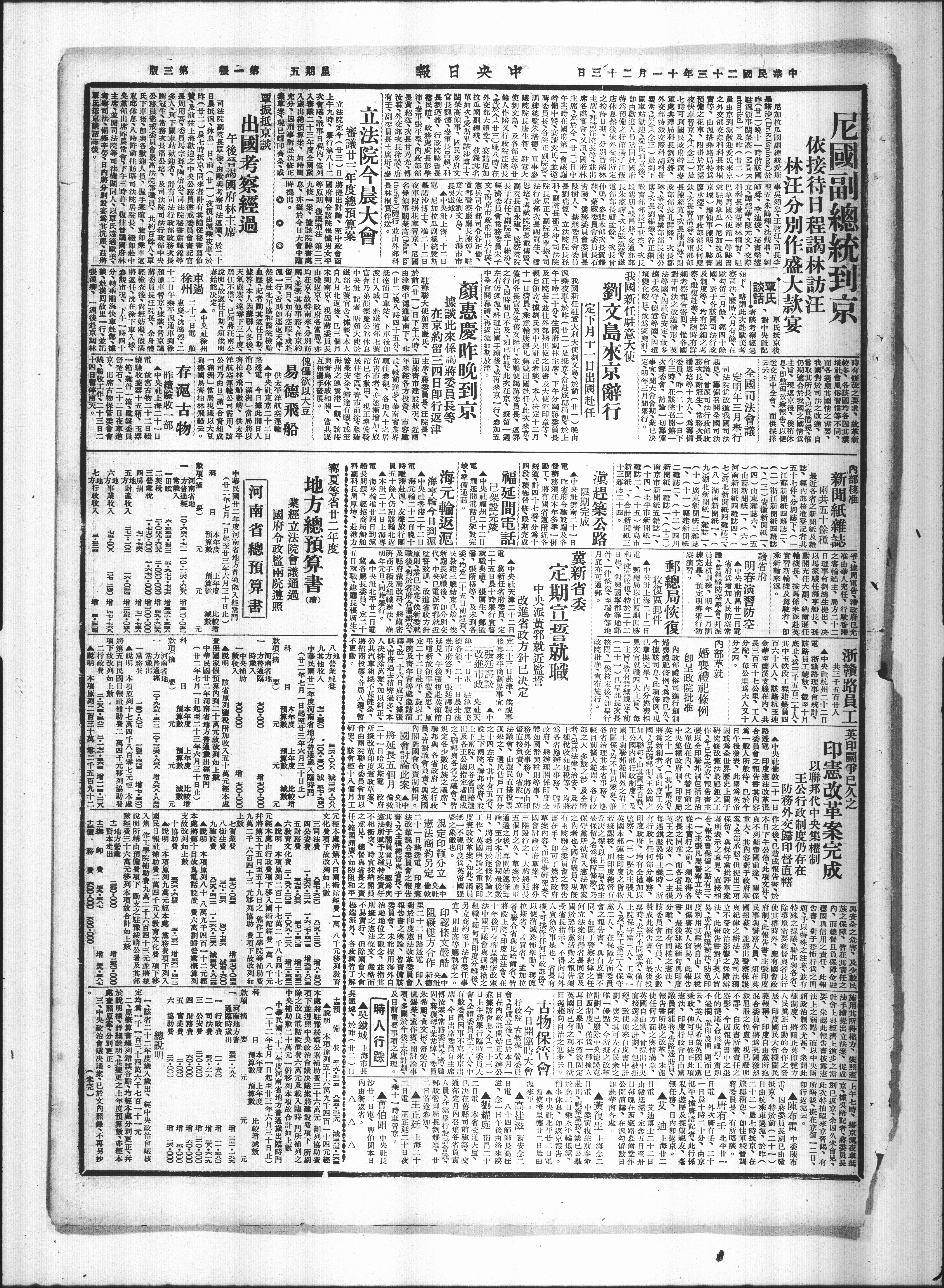中央耐福州二十二日