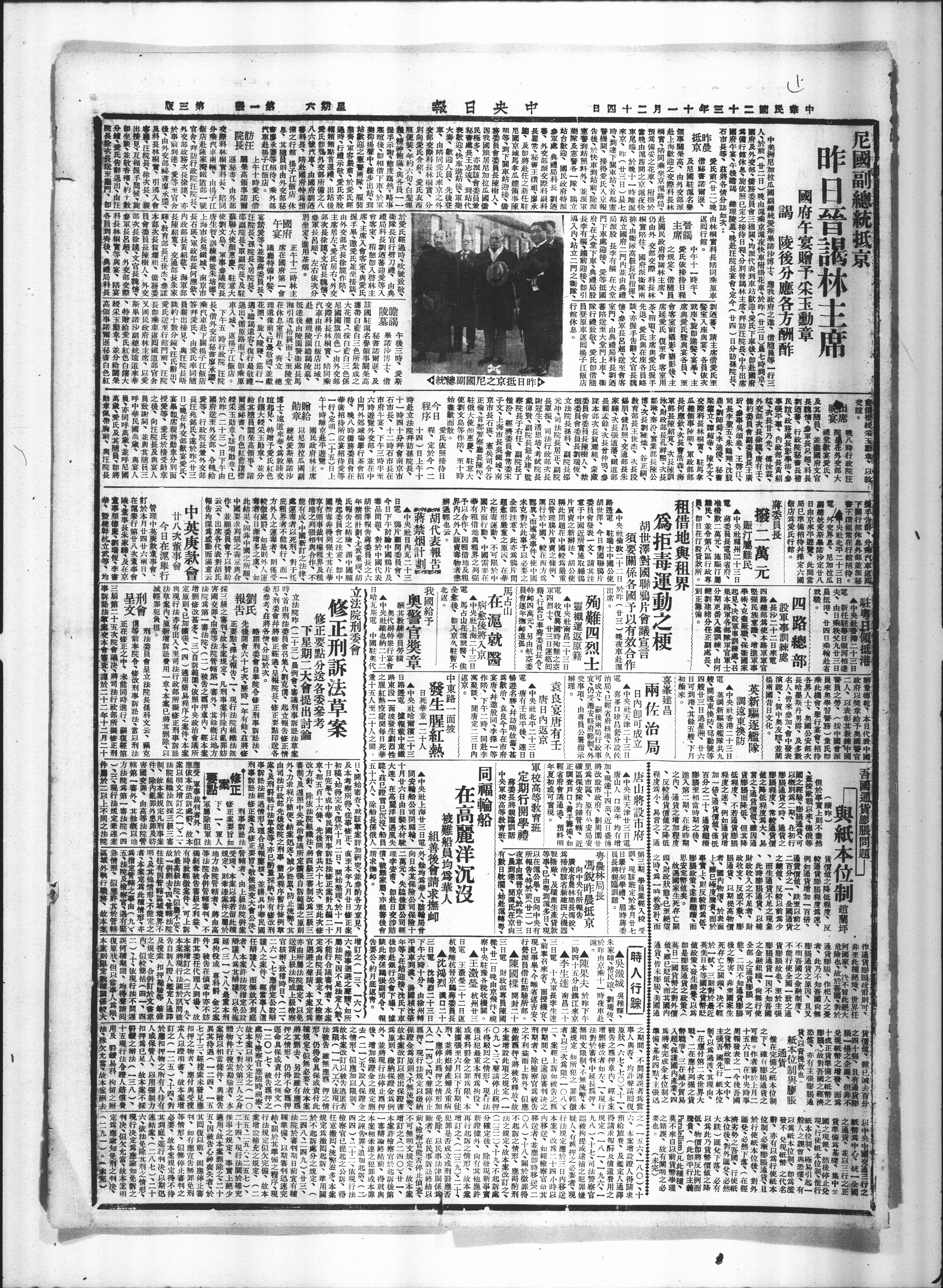 中央肚偷敦二十二日於昨(廿三)晚夜车赴泥