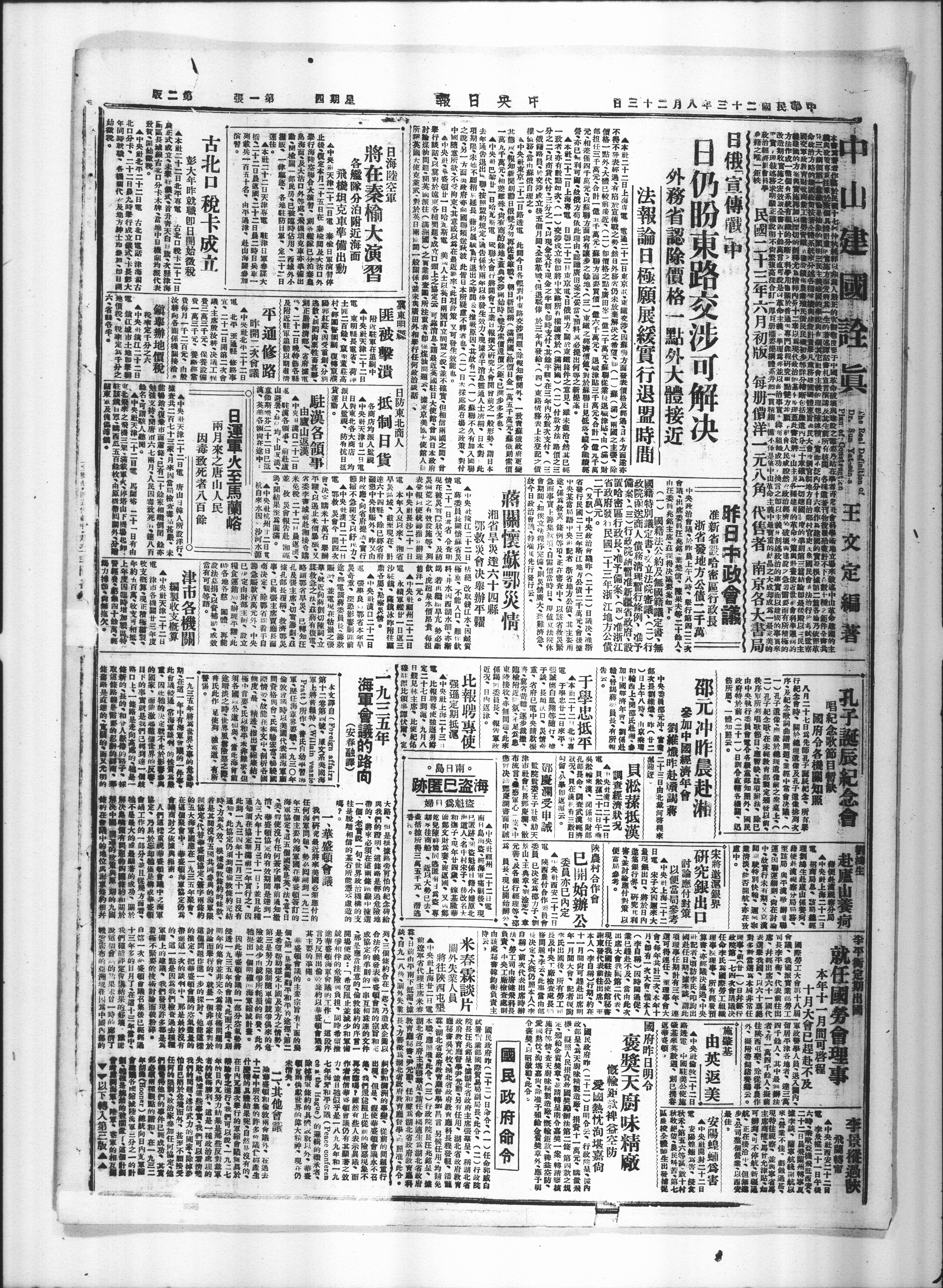 人中央肚北平二十二日電古北口笔话·津海古