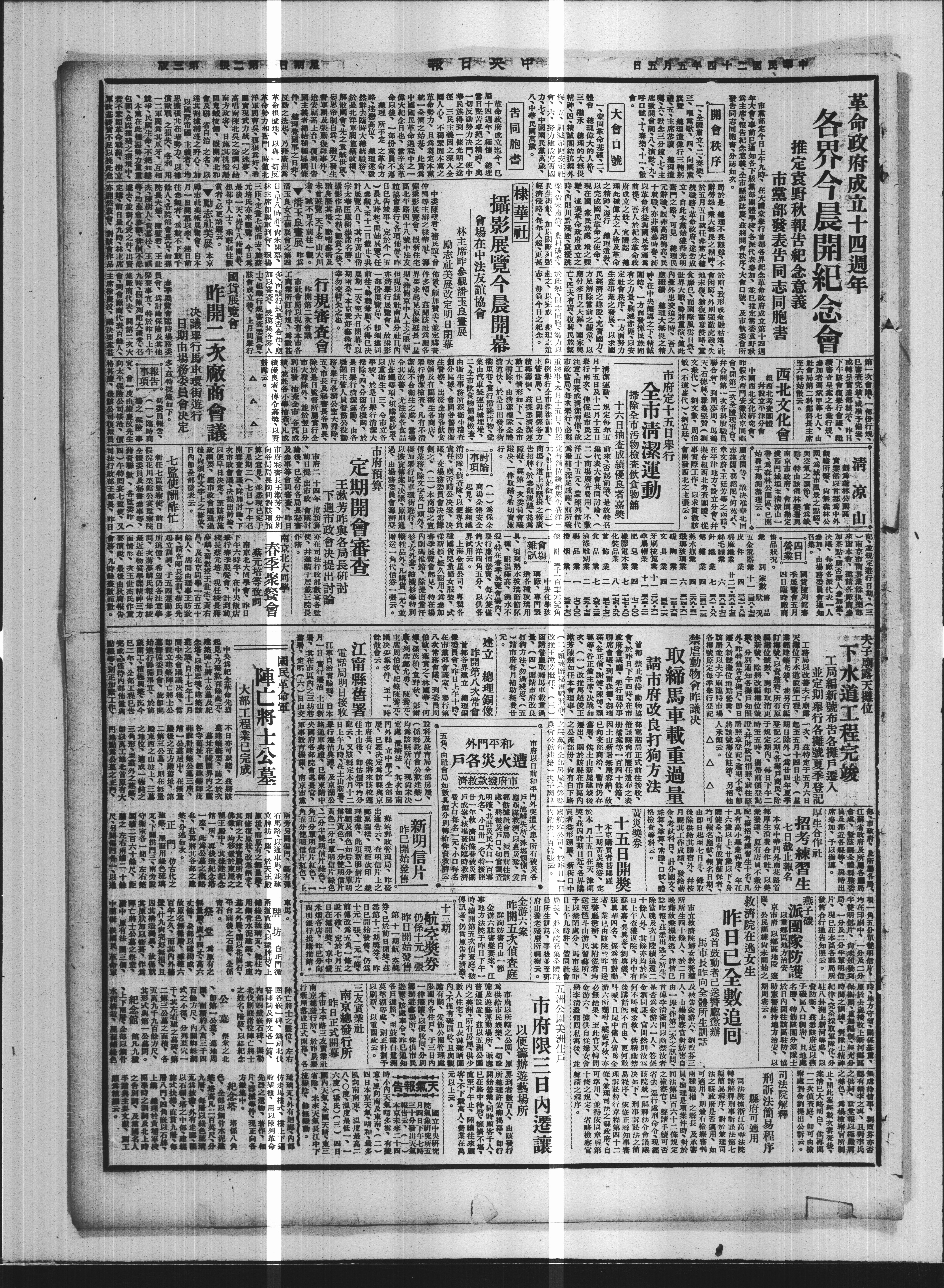 市党部定今日上午九时在大礼堂举行首都各界纪念革命政府成立第十四周